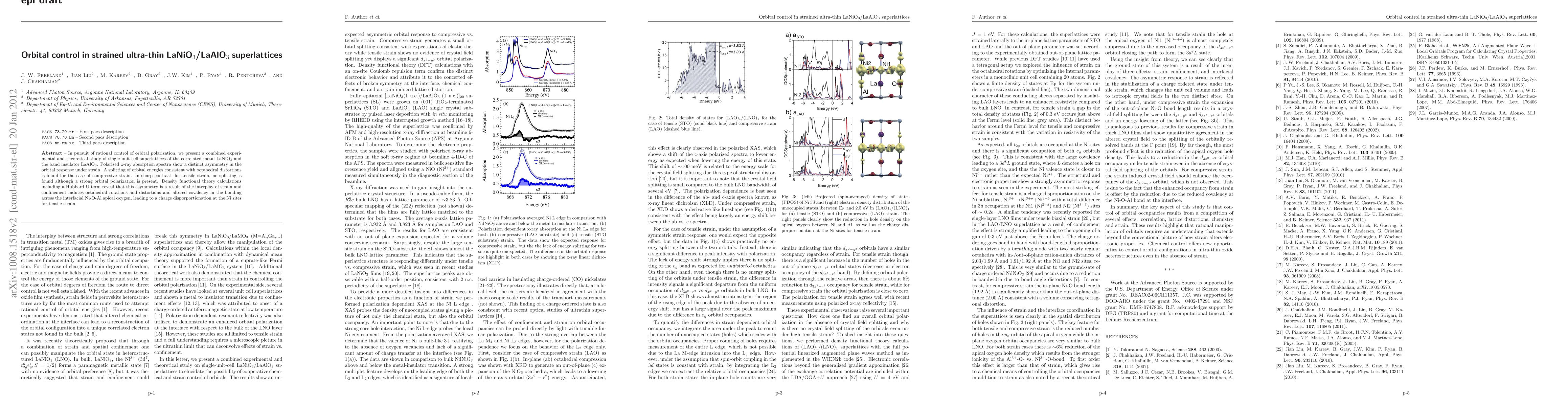 This research investigates the orbital polarization control in strained ultra-thin LaNiO$_3$/LaAlO$_3$ superlattices. Experimental and theoretical studies reveal that compressive strain induces orbital splitting, while tensile strain leads to strong orbital polarization without splitting, due to altered covalency and charge distribution at Ni sites.