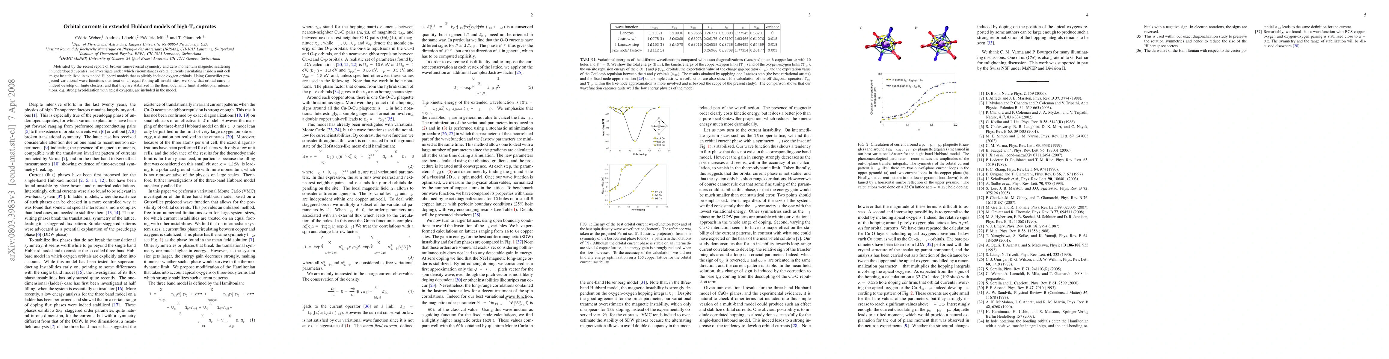 Summary: This study investigates the stabilization of orbital currents in extended Hubbard models of high-T$_c$ cuprates, revealing that such currents can develop on finite clusters and are stabilized in the thermodynamic limit with strong hybridization interactions, particularly with apical oxygens.