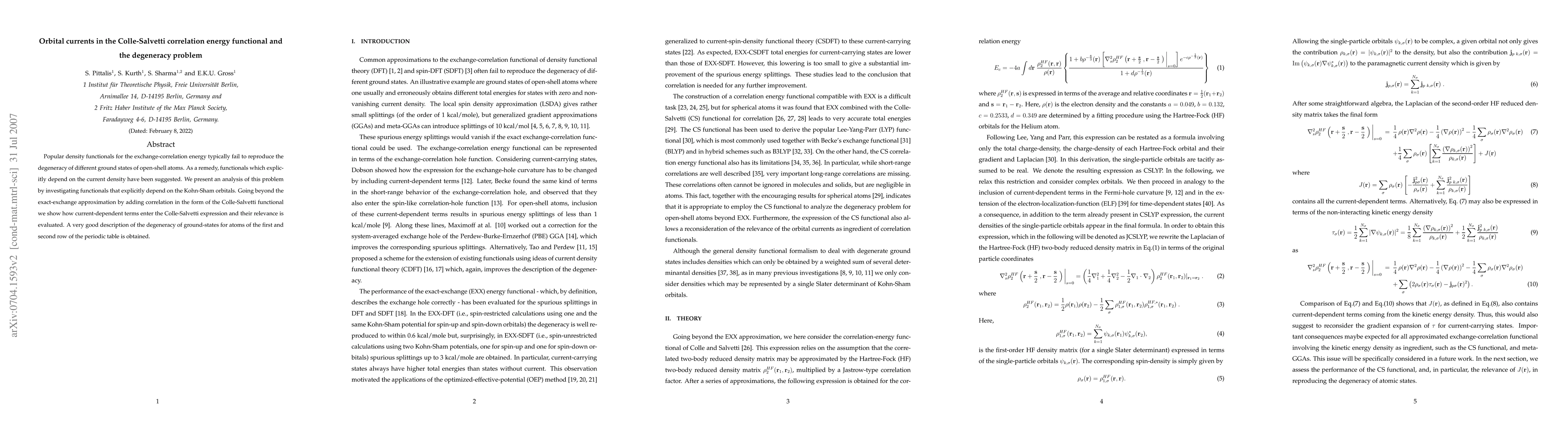 Popular density functionals for the exchange-correlation energy typically fail to reproduce the degeneracy of different ground states of open-shell atoms. As a remedy, functionals which explicitly depend on the current density have been suggested. We present an analysis of this problem by investigating functionals that explicitly depend on the Kohn-Sham orbitals. Going beyond the exact-exchange approximation by adding correlation in the form of the Colle-Salvetti functional we show how current-dependent terms enter the Colle-Salvetti expression and their relevance is evaluated. A very good description of the degeneracy of ground-states for atoms of the first and second row of the periodic table is obtained.