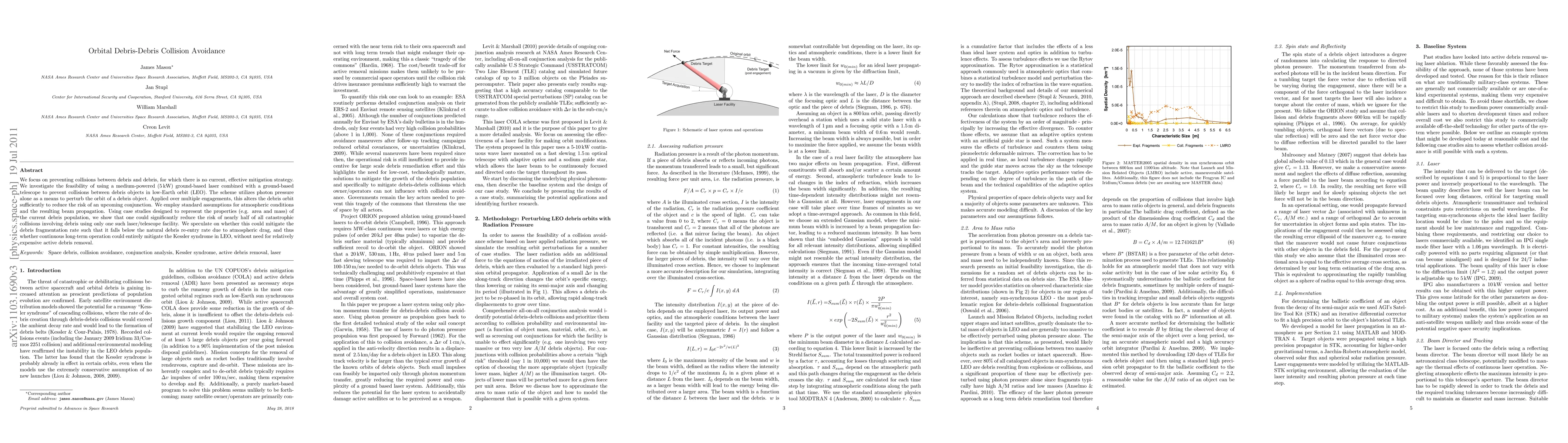 The paper presents a novel method for debris-debris collision avoidance using a medium-powered laser and ground-based telescope, leveraging photon pressure to alter debris orbits.