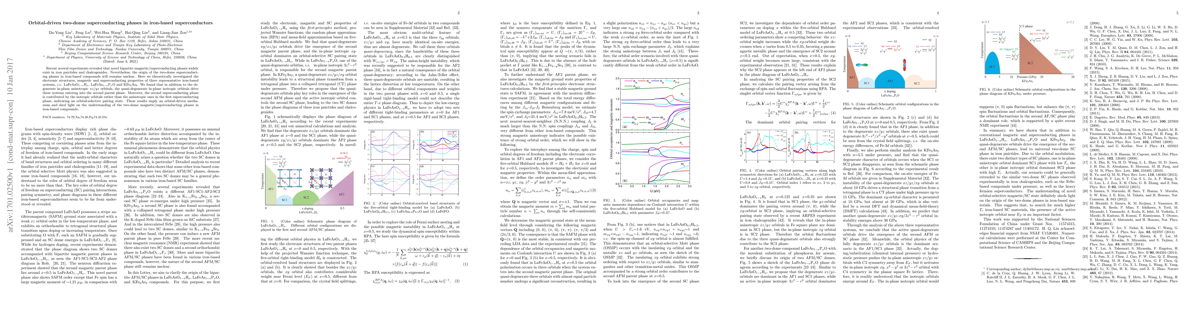 This paper investigates the electronic structures and superconducting properties of iron-based superconductors, revealing that quasi-degenerate isotropic orbitals drive the second superconducting phase. The findings suggest an orbital-selective pairing mechanism and provide insight into the origin of the two-dome superconducting phases in these materials.