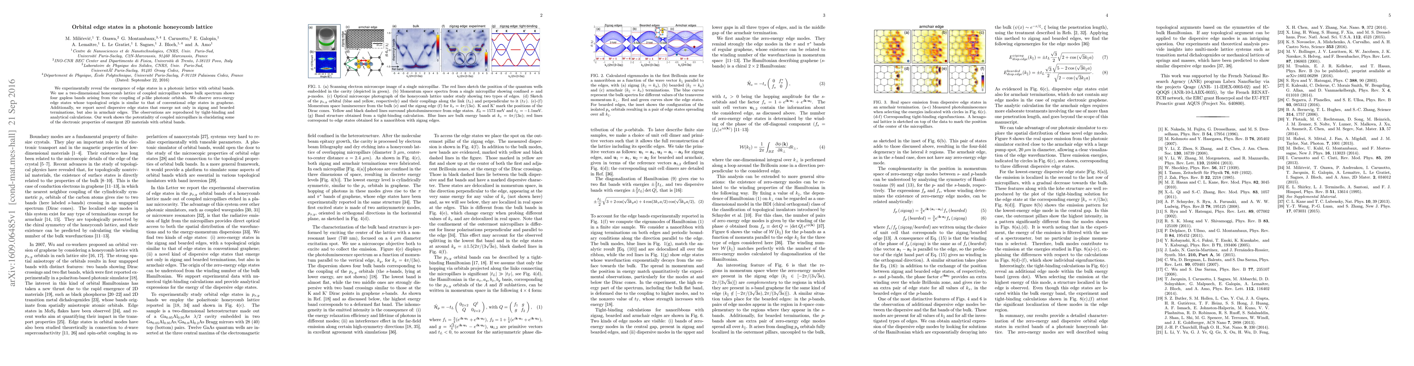 We experimentally reveal the emergence of edge states in a photonic lattice with orbital bands. We use a two-dimensional honeycomb lattice of coupled micropillars whose bulk spectrum shows four gapless bands arising from the coupling of $p$-like photonic orbitals. We observe zero-energy edge states whose topological origin is similar to that of conventional edge states in graphene. Additionally, we report novel dispersive edge states that emerge not only in zigzag and bearded terminations, but also in armchair edges. The observations are reproduced by tight-binding and analytical calculations. Our work shows the potentiality of coupled micropillars in elucidating some of the electronic properties of emergent 2D materials with orbital bands.