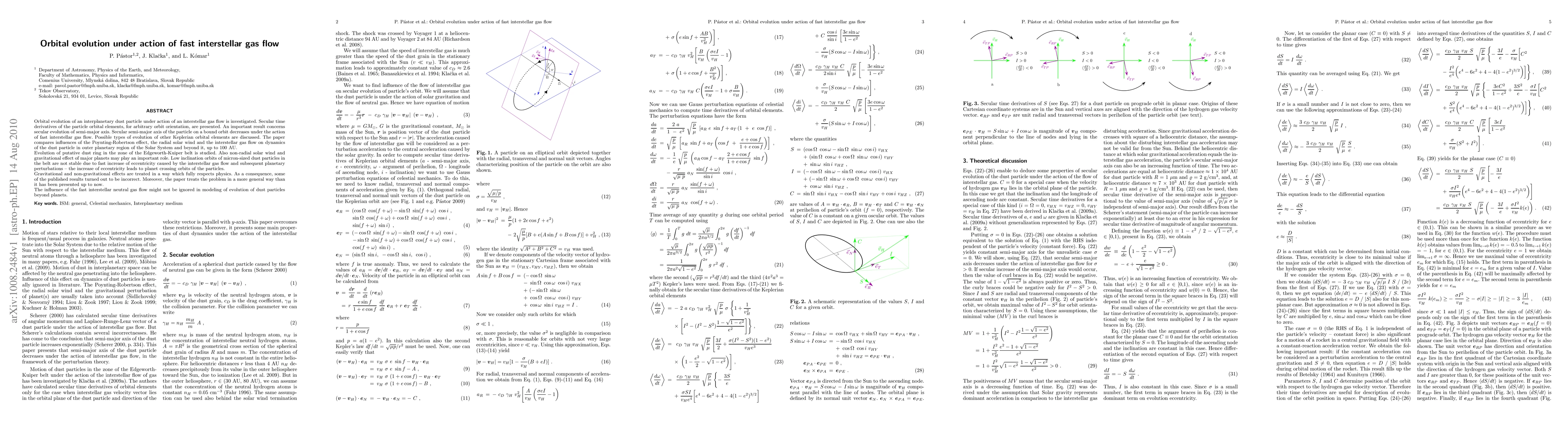 This paper investigates the orbital evolution of interplanetary dust particles influenced by fast interstellar gas flow, showing that the semi-major axis decreases over time. The study also highlights the destabilizing effects of this flow on low inclination orbits in the Edgeworth-Kuiper belt, leading to increased eccentricity and potential planet-crossing paths.