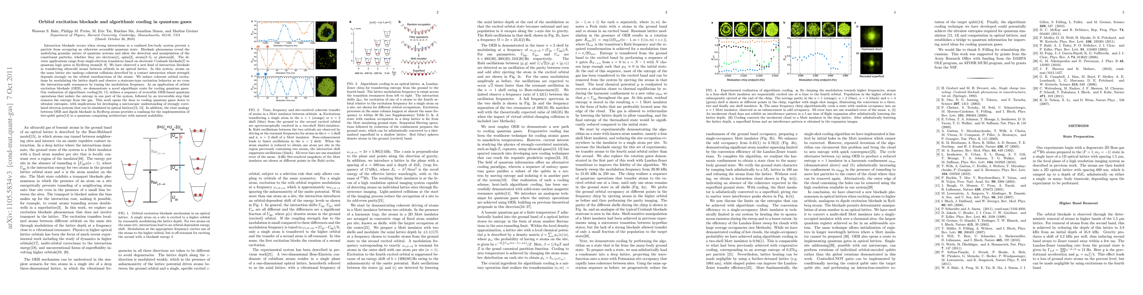 This paper explores orbital excitation blockade in ultracold atoms within an optical lattice, demonstrating a novel algorithmic cooling method for quantum gases. It reveals coherent orbital excitations and uses a sequence of reversible quantum operations to isolate and remove entropy, potentially aiding in the study of strongly correlated electron systems and scalable quantum computing.