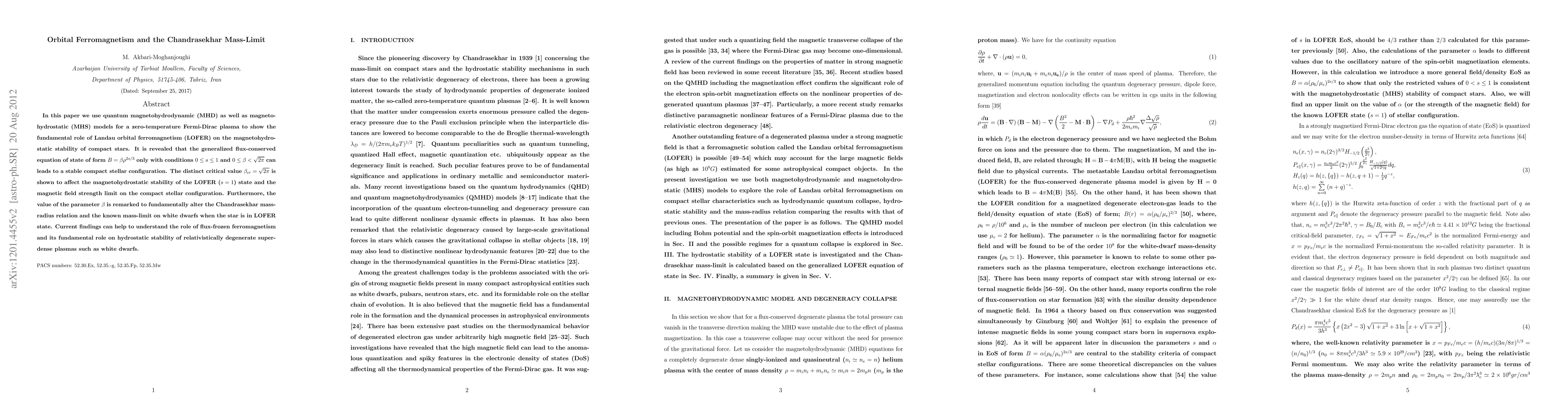This paper explores the impact of Landau orbital ferromagnetism on the magneto-gravitational stability of relativistically degenerate magnetic compact stars, revealing that specific parameters govern the critical stability threshold and influence gravitational collapse mechanisms, including the Chandrasekhar mass-limit.