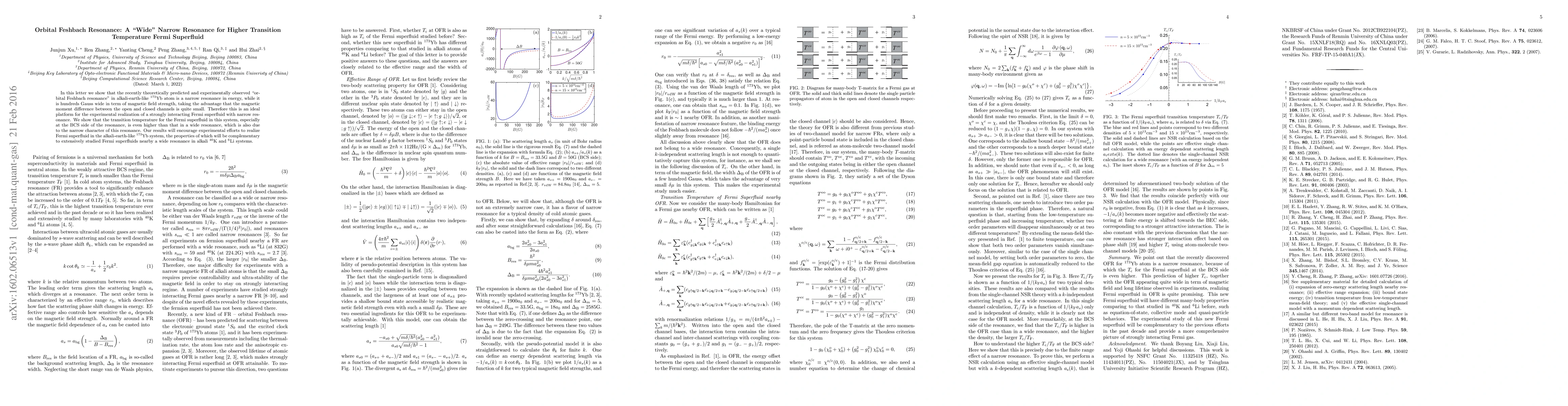 This paper demonstrates that the orbital Feshbach resonance in Yb-173 atoms is a narrow energy resonance but spans hundreds of Gauss in magnetic field strength, making it ideal for achieving a strongly interacting Fermi superfluid. The transition temperature for this system is higher than in systems with wide resonances, encouraging further experimental studies.