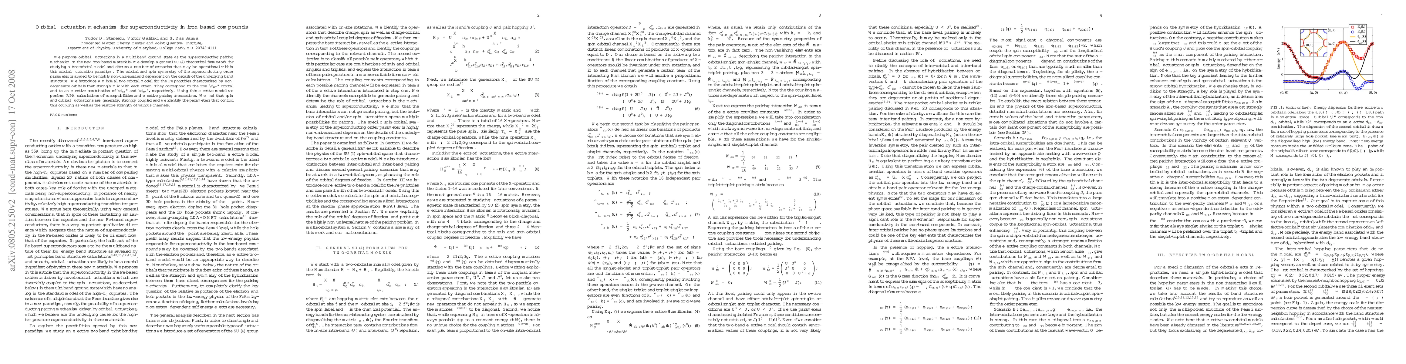 We propose orbital fluctuations in a multi-band ground state as the superconducting pairing mechanism in the new iron-based materials. We develop a general SU(4) theoretical framework for studying a two-orbital model and discuss a number of scenarios that may be operational within this orbital fluctuation paradigm. The orbital and spin symmetry of the superconducting order parameter is argued to be highly non-universal and dependent on the details of the underlying band structure. We introduce a minimal two-orbital model for the Fe-pnictides characterized by non-degenerate orbitals that strongly mix with each other. They correspond to the iron "d_xy" orbital and to an effective combination of "d_zx" and "d_zy", respectively. Using this effective model we perform RPA calculations of susceptibilities and effective pairing interactions. We find that spin and orbital fluctuations are, generally, strongly coupled and we identify the parameters that control this coupling as well as the relative strength of various channels.
