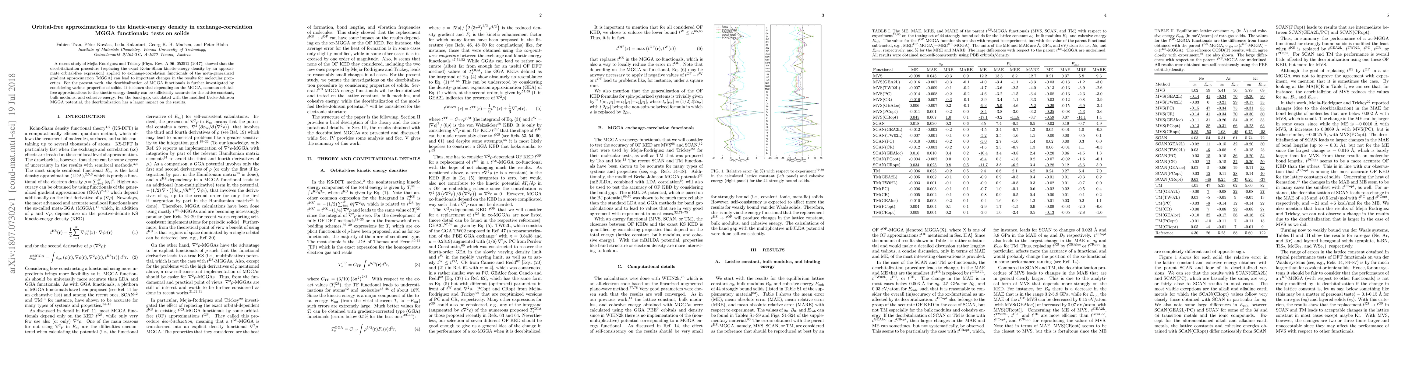 This paper explores the application of orbital-free approximations to kinetic-energy density in meta-generalized gradient approximation (MGGA) functionals for solid materials. It finds that these approximations can be sufficiently accurate for lattice constant, bulk modulus, and cohesive energy, but have a larger impact on band gap calculations.