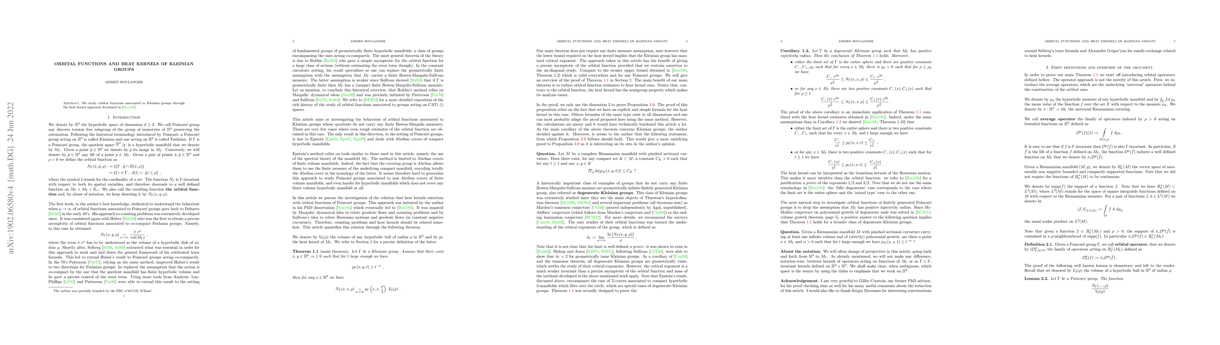Summary: This paper investigates orbital functions linked to Kleinian groups using a heat kernel method, building on prior work in heat counting techniques from \cite{artmoiheatcounting1}. The study aims to deepen the understanding of the group's geometric and dynamical properties.