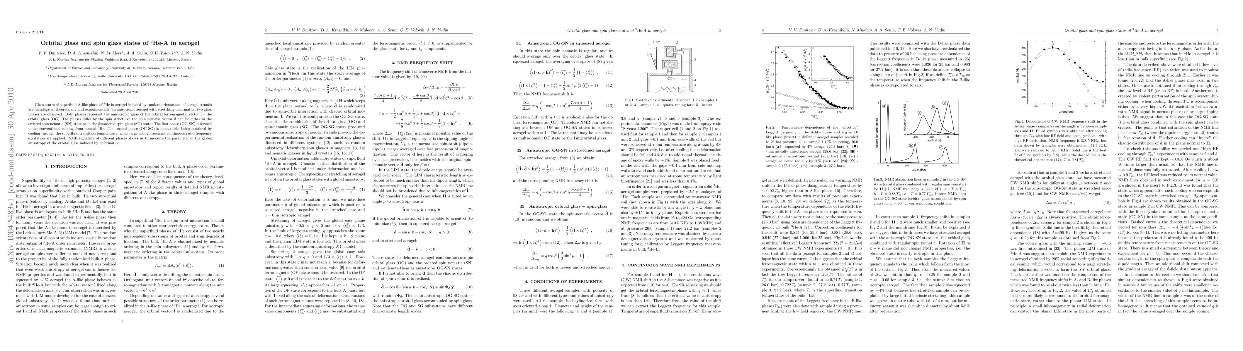 This paper investigates the orbital and spin glass states in the superfluid A-like phase of 3He within aerogel, revealing two distinct phases characterized by different spin structures. The study combines theoretical and experimental approaches to explore the effects of aerogel deformation on these states.