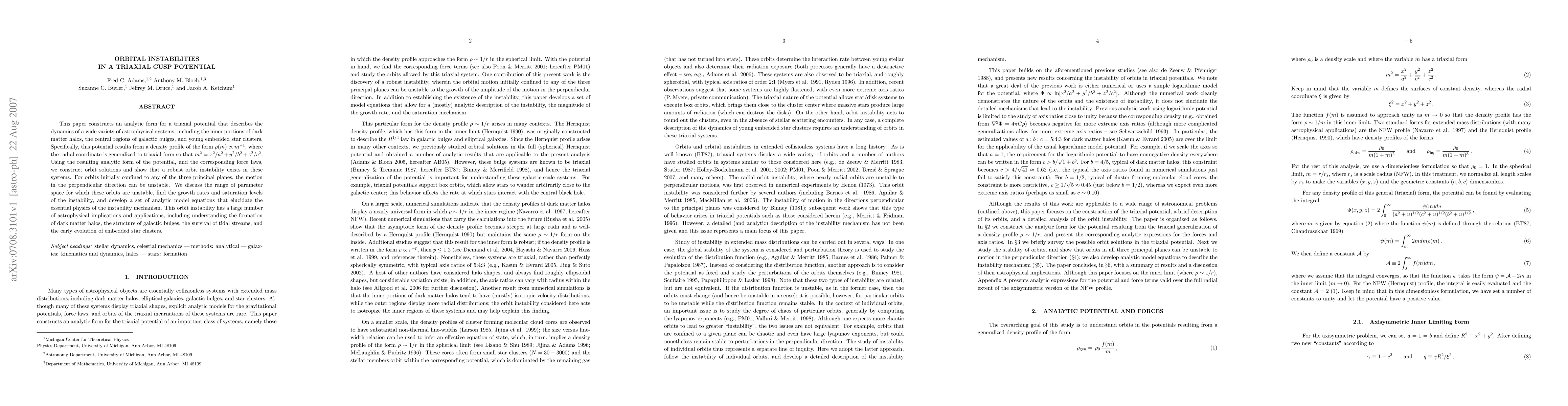 This paper develops an analytic triaxial cusp potential and demonstrates that orbits in such systems exhibit significant instabilities, particularly in directions perpendicular to the principal planes, with implications for dark matter halos, galactic bulges, tidal streams, and star clusters. The study identifies the instability range, growth rates, and saturation levels.