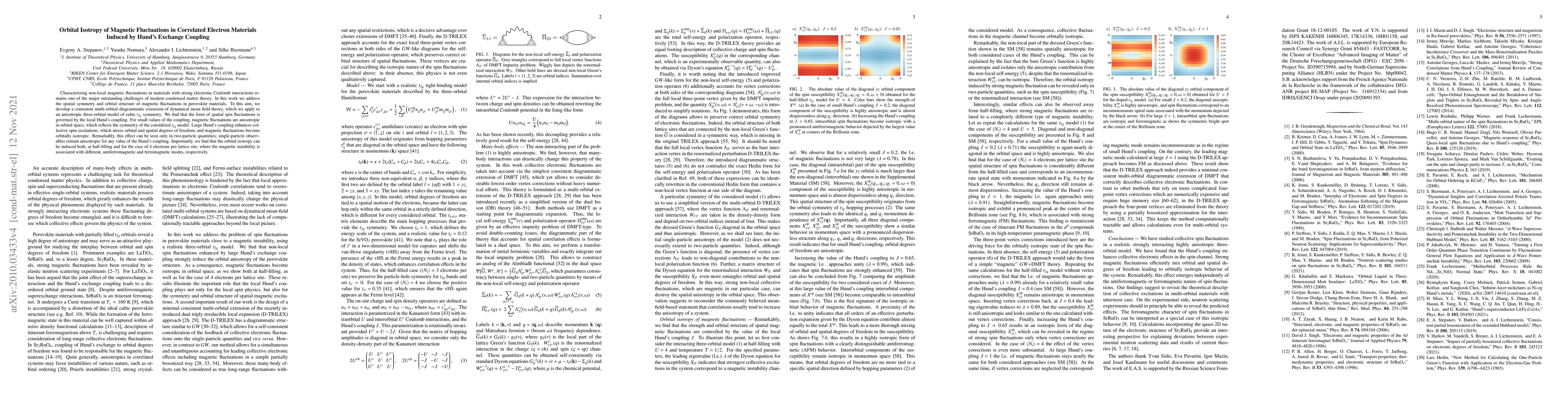 Characterizing non-local magnetic fluctuations in materials with strong electronic Coulomb interactions remains one of the major outstanding challenges of modern condensed matter theory. In this work we address the spatial symmetry and orbital structure of magnetic fluctuations in perovskite materials. To this aim, we develop a consistent multi-orbital diagrammatic extension of dynamical mean field theory, which we apply to an anisotropic three-orbital model of cubic $t_{2g}$ symmetry. We find that the form of spatial spin fluctuations is governed by the local Hund's coupling. For small values of the coupling, magnetic fluctuations are anisotropic in orbital space, which reflects the symmetry of the considered $t_{2g}$ model. Large Hund's coupling enhances collective spin excitations, which mixes orbital and spatial degrees of freedom, and magnetic fluctuations become orbitally isotropic. Remarkably, this effect can be seen only in two-particle quantities; single-particle observables remain anisotropic for any value of the Hund's coupling. Importantly, we find that the orbital isotropy can be induced both, at half-filling and for the case of $4$ electrons per lattice site, where the magnetic instability is associated with different, antiferromagnetic and ferromagnetic modes, respectively.