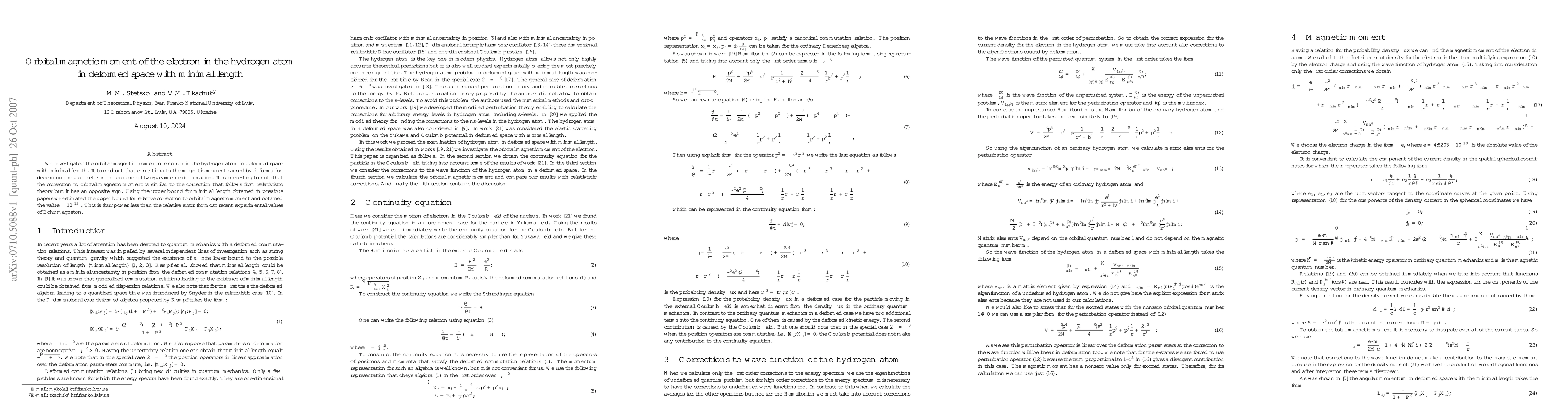 This paper investigates the orbital magnetic moment of an electron in a hydrogen atom under deformed space with minimal length, revealing that the corrections to the magnetic moment depend on a single parameter in a two-parametric deformation. The study finds that the correction's sign is opposite to that predicted by relativistic theory, and estimates the upper bound for the relative correction to be approximately $10^{-12}$, which is four orders of magnitude smaller than current experimental uncertainties.