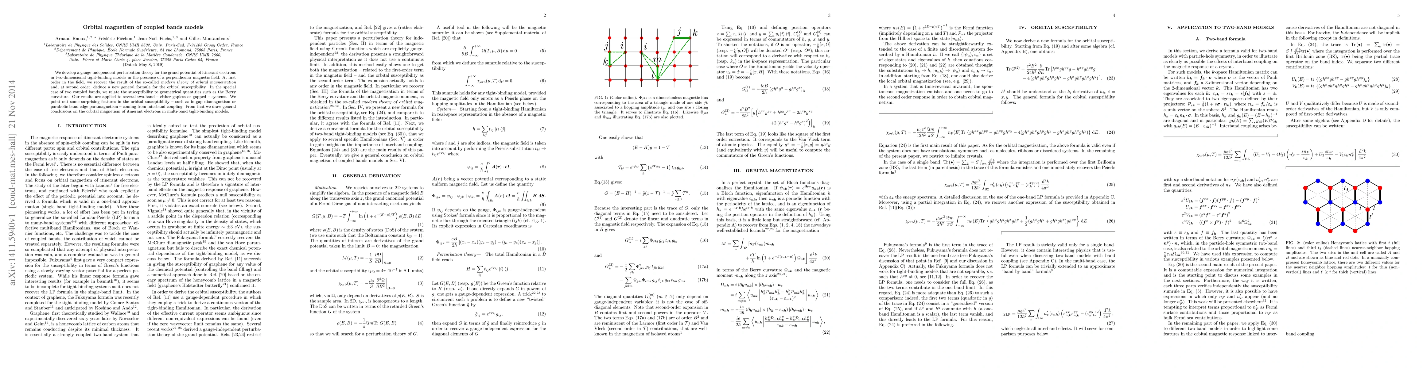 This paper develops a gauge-independent perturbation theory for itinerant electrons in two-dimensional tight-binding models under a magnetic field, deriving a new formula for orbital susceptibility at second order. It highlights surprising features like in-gap diamagnetism and paramagnetism from interband coupling, providing insights into orbital magnetism in multi-band systems.