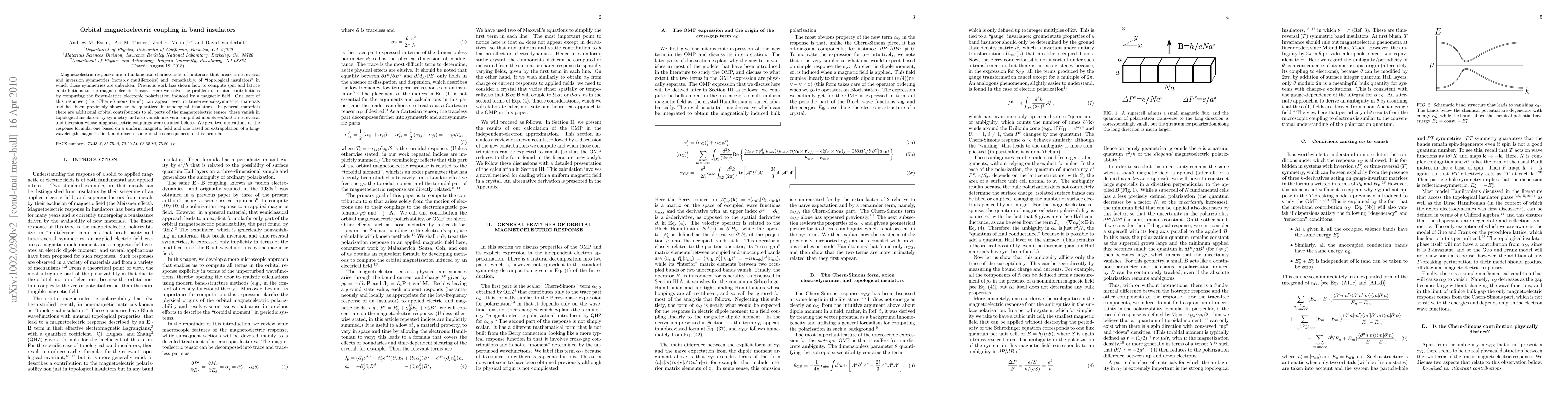 This paper investigates orbital magnetoelectric coupling in band insulators, focusing on the frozen-lattice electronic polarization induced by a magnetic field. It reveals the presence of a Chern-Simons term in time-reversal-symmetric materials and provides two derivations for the magnetoelectric tensor response formula.