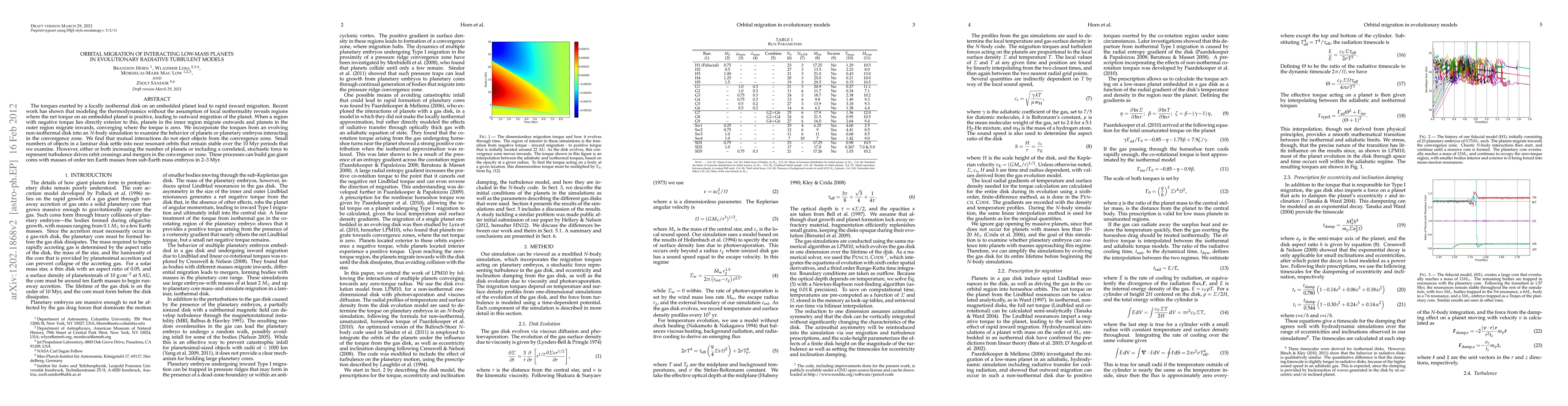 This paper investigates the orbital migration of low-mass planets in non-isothermal disks, finding that regions of positive and negative torque can lead to inward and outward migration, respectively. It concludes that while mutual interactions in a laminar disk can stabilize small numbers of planets in resonant orbits, increased planet numbers or turbulence can cause orbit crossings, mergers, and rapid core growth of gas giants.