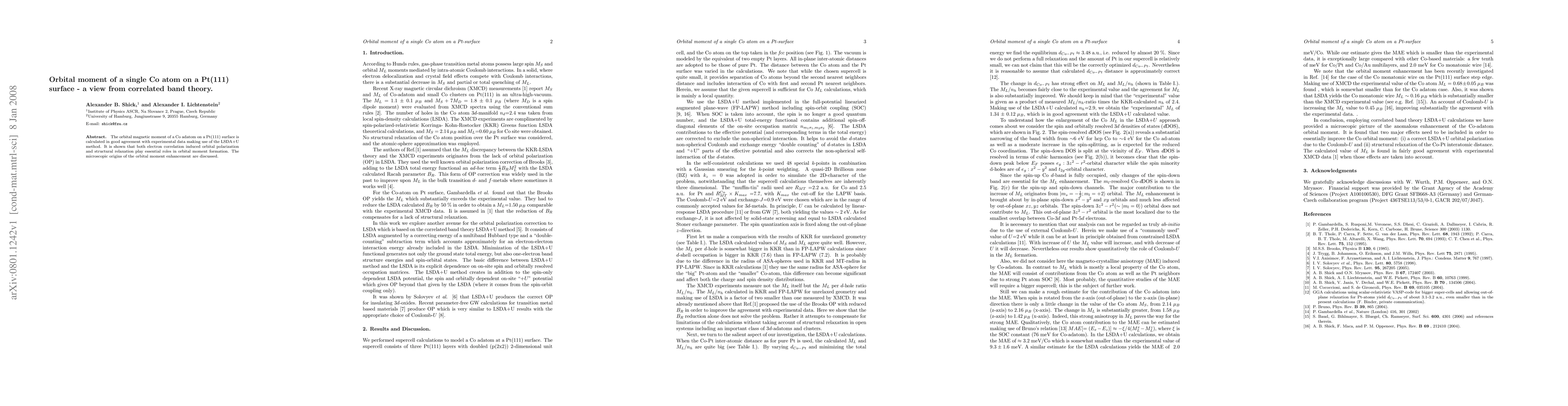 The orbital magnetic moment of a Co adatom on a Pt(111) surface is calculated in good agreement with experimental data making use of the LSDA+U method. It is shown that both electron correlation induced orbital polarization and structural relaxation play essential roles in orbital moment formation. The microscopic origins of the orbital moment enhancement are discussed.