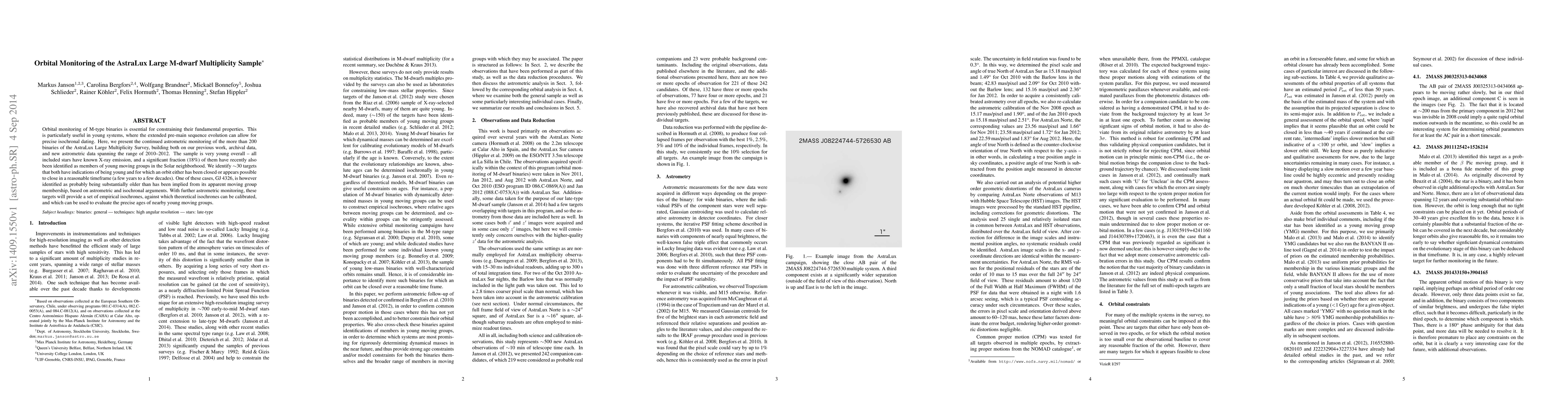 Orbital monitoring of M-type binaries is essential for constraining their fundamental properties. This is particularly useful in young systems, where the extended pre-main sequence evolution can allow for precise isochronal dating. Here, we present the continued astrometric monitoring of the more than 200 binaries of the AstraLux Large Multiplicity Survey, building both on our previous work, archival data, and new astrometric data spanning the range of 2010-2012. The sample is very young overall -- all included stars have known X-ray emission, and a significant fraction (18%) of them have recently also been identified as members of young moving groups in the Solar neighborhood. We identify ~30 targets that both have indications of being young and for which an orbit either has been closed or appears possible to close in a reasonable timeframe (a few years to a few decades). One of these cases, GJ 4326, is however identified as probably being substantially older than has been implied from its apparent moving group membership, based on astrometric and isochronal arguments. With further astrometric monitoring, these targets will provide a set of empirical isochrones, against which theoretical isochrones can be calibrated, and which can be used to evaluate the precise ages of nearby young moving groups.