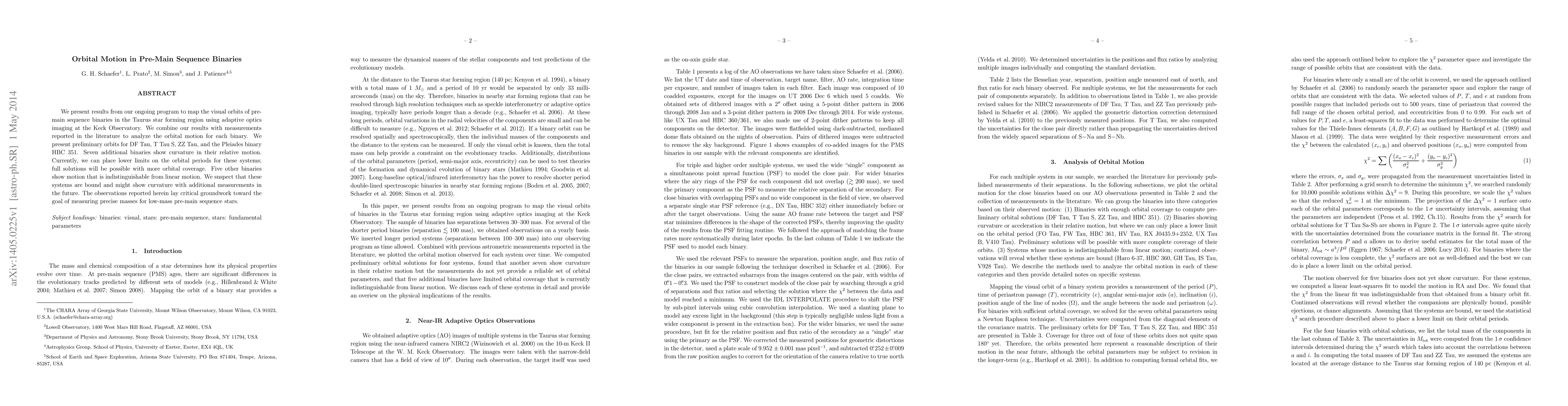 This paper reports on adaptive optics imaging of pre-main sequence binaries in Taurus, presenting preliminary orbits for four binaries and noting curvature in the motion of seven others, while five appear to have linear motion. The study aims to measure precise masses for low-mass stars.