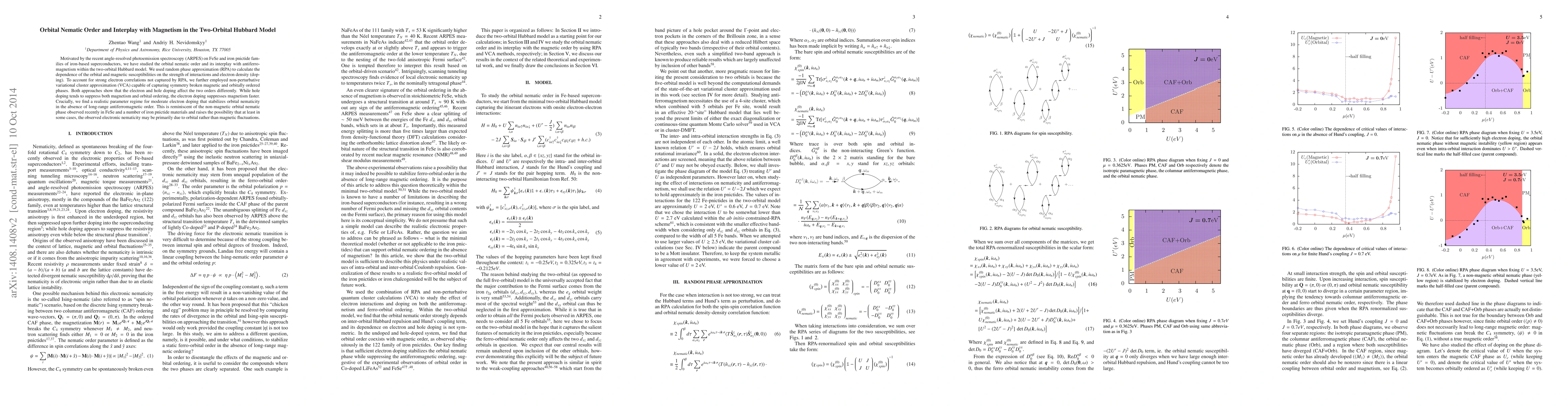 This paper explores orbital nematic order and its relationship with antiferromagnetism in the two-orbital Hubbard model, using RPA and VCA methods. It finds that electron doping stabilizes orbital nematicity without long-range antiferromagnetism, suggesting that orbital rather than magnetic fluctuations may be the primary driver of observed nematicity in iron-based superconductors.