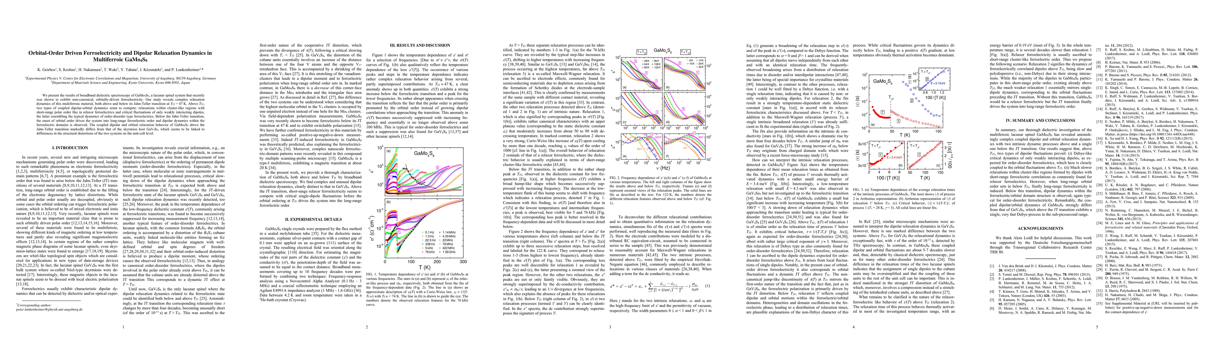 We present the results of broadband dielectric spectroscopy of GaMo$_4$S$_8$, a lacunar spinel system that recently was shown to exhibit non-canonical, orbitally-driven ferroelectricity. Our study reveals complex relaxation dynamics of this multiferroic material, both above and below its Jahn-Teller transition at T$_{\textrm{JT}}=47$ K. Above T$_{\textrm{JT}}$, two types of coupled dipolar-orbital dynamics seem to compete: relaxations within cluster-like regions with short-range polar order like in relaxor ferroelectrics and critical fluctuations of only weakly interacting dipoles, the latter resembling the typical dynamics of order-disorder type ferroelectrics. Below the Jahn-Teller transition, the onset of orbital order drives the system into long-range ferroelectric order and dipolar dynamics within the ferroelectric domains is observed. The coupled dipolar and orbital relaxation behavior of GaMo$_4$S$_8$ above the Jahn-Teller transition markedly differs from that of the skyrmion host GaV$_4$S$_8$, which seems to be linked to differences in the structural distortions of the two systems on the unit-cell level.