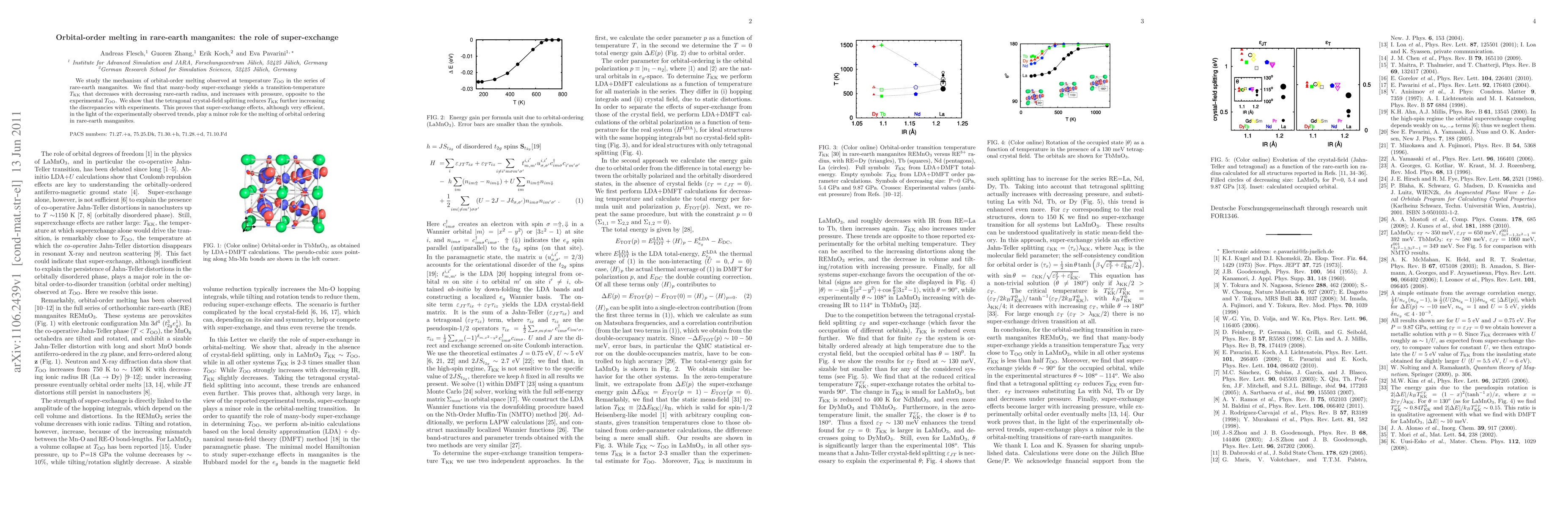 Rare-earth manganites exhibit orbital-order melting at temperature T_OO, with super-exchange effects showing a minor role in this phenomenon, contrary to experimental observations which suggest other factors dominate the transition.