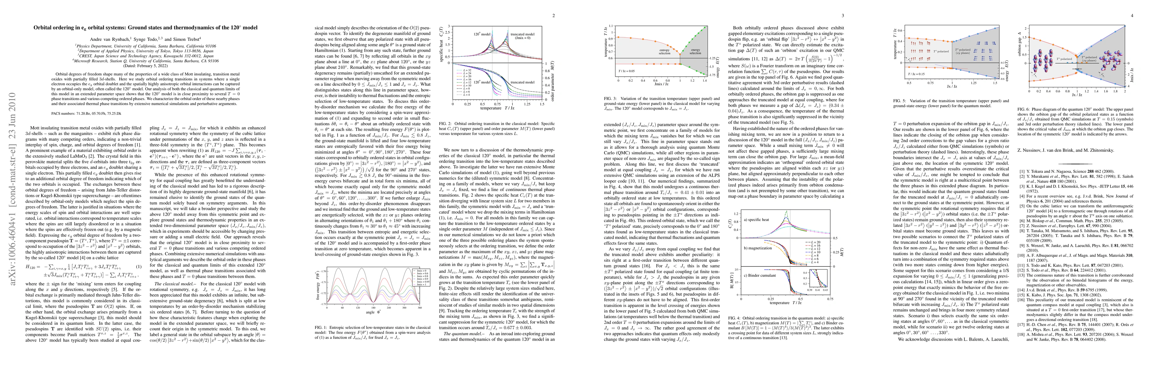 This paper investigates orbital ordering transitions in Mott insulators using the 120 degree model, focusing on systems with a single electron in the e_g orbital doublet. The study reveals the proximity of this model to various phase transitions and competing ordered phases, characterized through numerical simulations and perturbative methods.