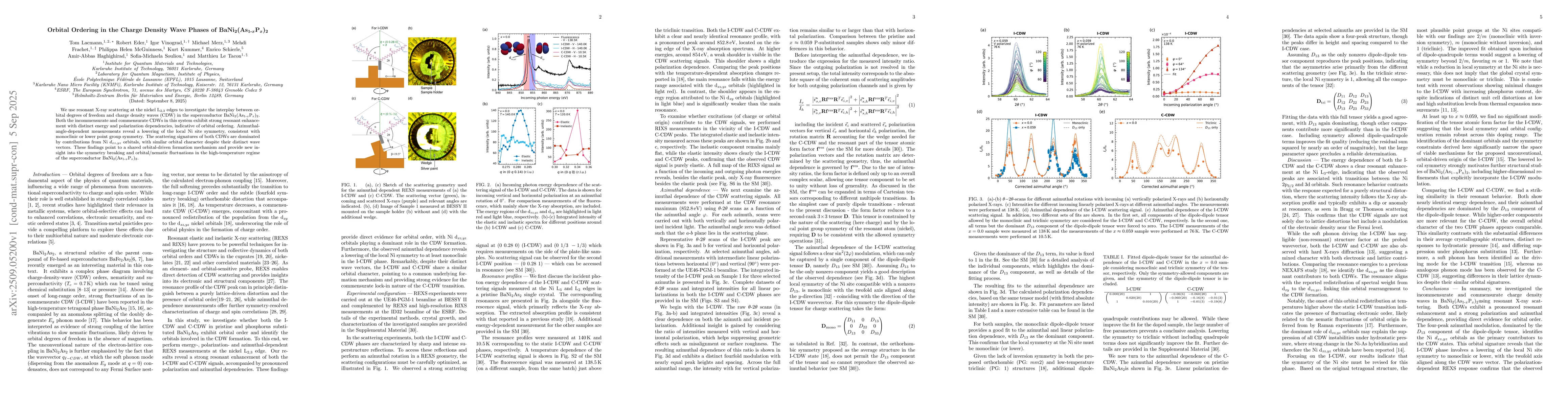 We use resonant X-ray scattering at the nickel L$_{2,3}$ edges to investigate the interplay between orbital degrees of freedom and charge density waves (CDW) in the superconductor BaNi$_2$(As$_{1-x}$P$_x$)$_2$. Both the incommensurate and commensurate CDWs in this system exhibit strong resonant enhancement with distinct energy and polarization dependencies, indicative of orbital ordering. Azimuthal-angle-dependent measurements reveal a lowering of the local Ni site symmetry, consistent with monoclinic or lower point group symmetry. The scattering signatures of both CDWs are dominated by contributions from Ni d$_{xz,yz}$ orbitals, with similar orbital character despite their distinct wave vectors. These findings point to a shared orbital-driven formation mechanism and provide new insight into the symmetry breaking and orbital/nematic fluctuations in the high-temperature regime of the superconductor BaNi$_2$(As$_{1-x}$P$_x$)$_2$.