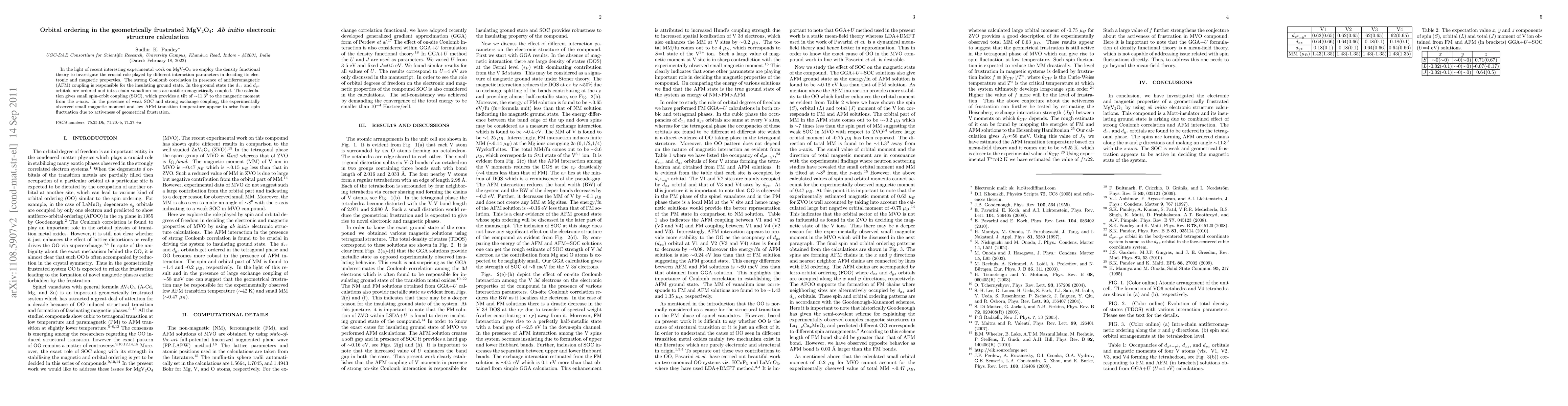 In the light of recent interesting experimental work on MgV$_2$O$_4$ we employ the density functional theory to investigate the crucial role played by different interaction parameters in deciding its electronic and magnetic properties. The strong Coulomb correlation in presence of antiferromagnetic (AFM) coupling is responsible for the insulating ground state. In the ground state the $d_{xz}$ and $d_{yz}$ orbitals are ordered and intra-chain vanadium ions are antiferromagnetically coupled. The calculation gives small spin-orbit coupling (SOC), which provides a tilt of $\sim11.3^0$ to the magnetic moment from the z-axis. In the presence of weak SOC and strong exchange coupling, the experimentally observed small magnetic moment and low AFM transition temperature appear to arise from spin fluctuation due to activeness of geometrical frustration.