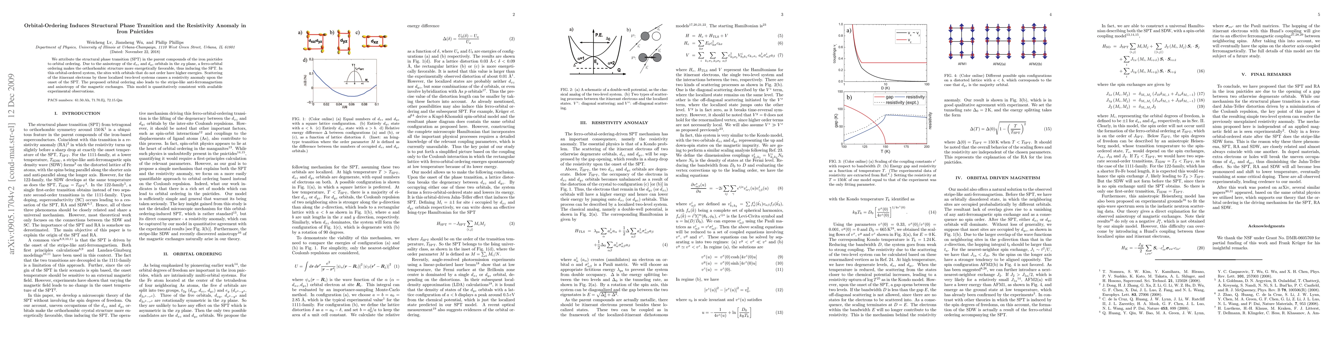 This paper attributes the structural phase transition in iron pnictides to ferro-orbital ordering, which stabilizes an orthorhombic structure and induces resistivity anomalies due to scattering of itinerant electrons. The model aligns with experimental observations and suggests stripe-like anti-ferromagnetism and magnetic exchange anisotropy.