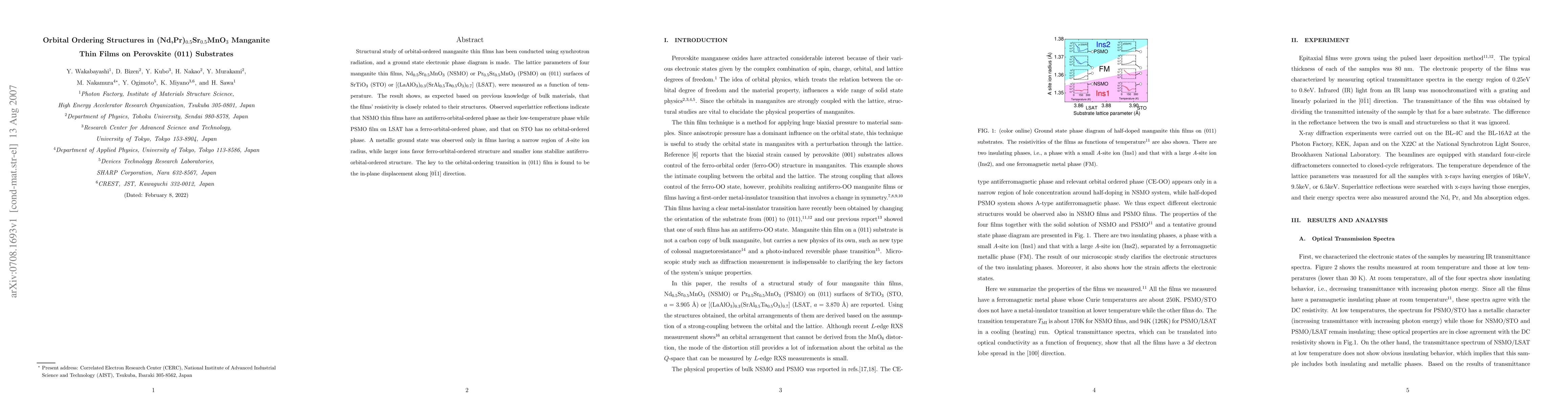 Researchers studied orbital-ordered manganite thin films on perovskite substrates, finding that resistivity and structure are closely related and that certain ion sizes favor ferro-orbital or antiferro-orbital ordering.