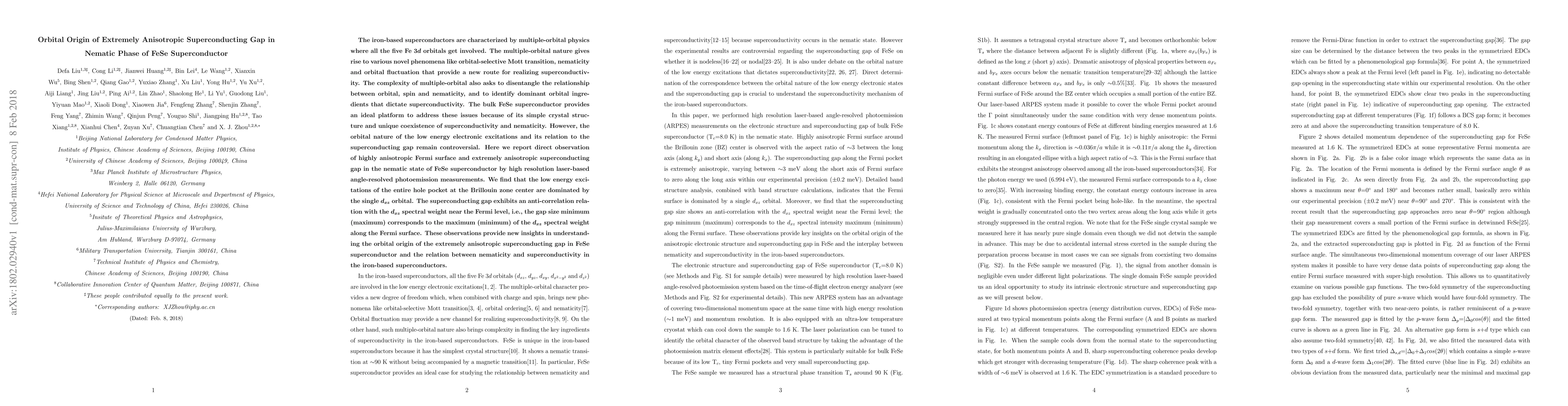 This paper reports high-resolution laser-based angle-resolved photoemission measurements revealing a highly anisotropic superconducting gap in FeSe's nematic phase, dominated by the $d_{xz}$ orbital. The study finds an anti-correlation between the $d_{xz}$ spectral weight and the superconducting gap, providing insights into the orbital origin of the gap's anisotropy and the relationship between nematicity and superconductivity in iron-based superconductors.