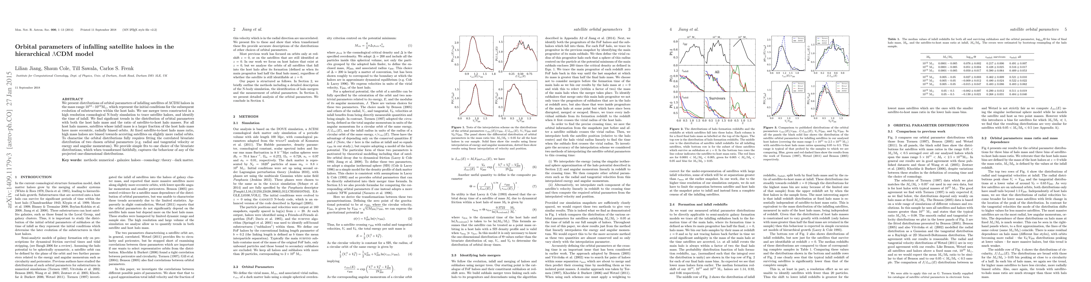This paper investigates the orbital parameters of infalling satellite haloes in the $\Lambda$CDM model, finding that satellite orbits depend significantly on both host halo mass and satellite-to-host mass ratio. High mass satellites tend to have more eccentric orbits, while larger host haloes favor more radial orbits for similar mass ratios.