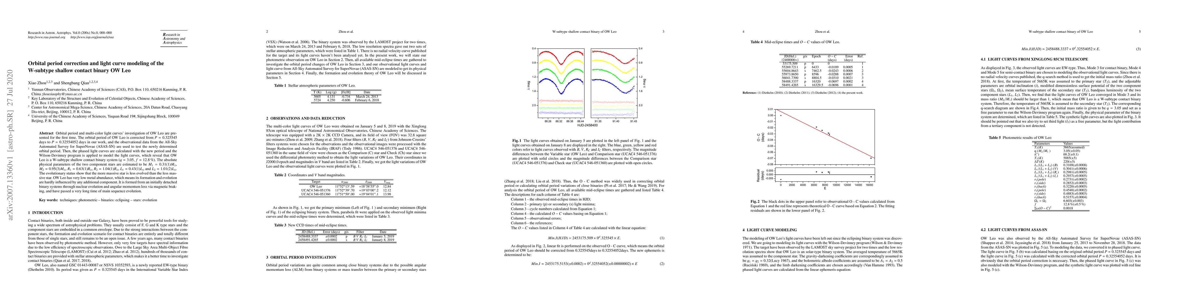 This paper corrects the orbital period of the shallow contact binary OW Leo from 0.325545 to 0.32554052 days, models its light curves using the Wilson-Devinney program, and determines it to be a W-subtype system with estimated physical parameters for its two stars.