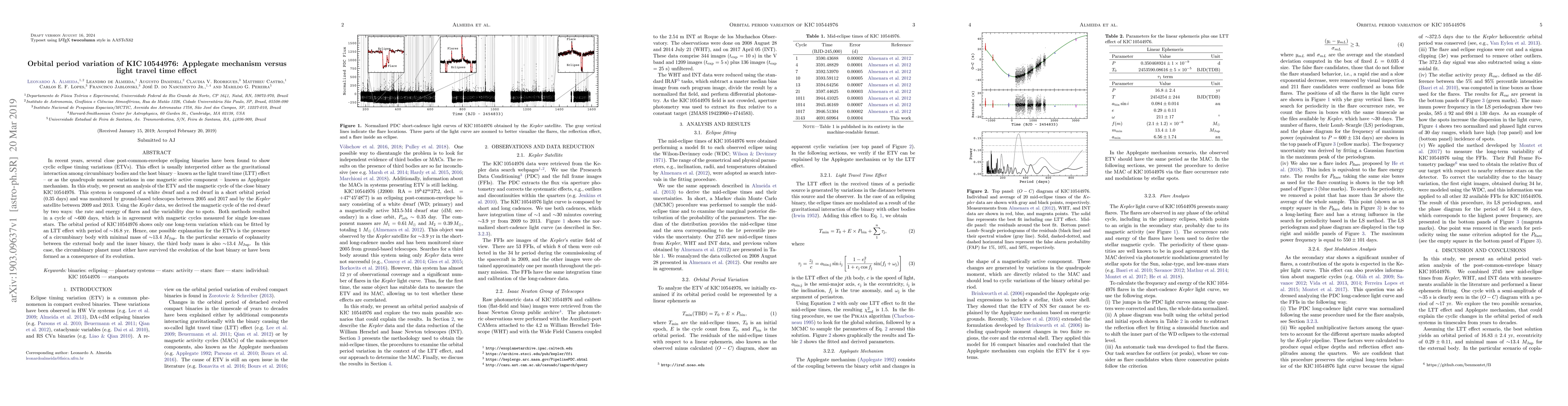 Researchers analyzed KIC 10544976's cyclic eclipse timing variations, finding a magnetic cycle of ~600 days that rules out the Applegate mechanism, instead suggesting a circumbinary body with minimal mass as the cause.