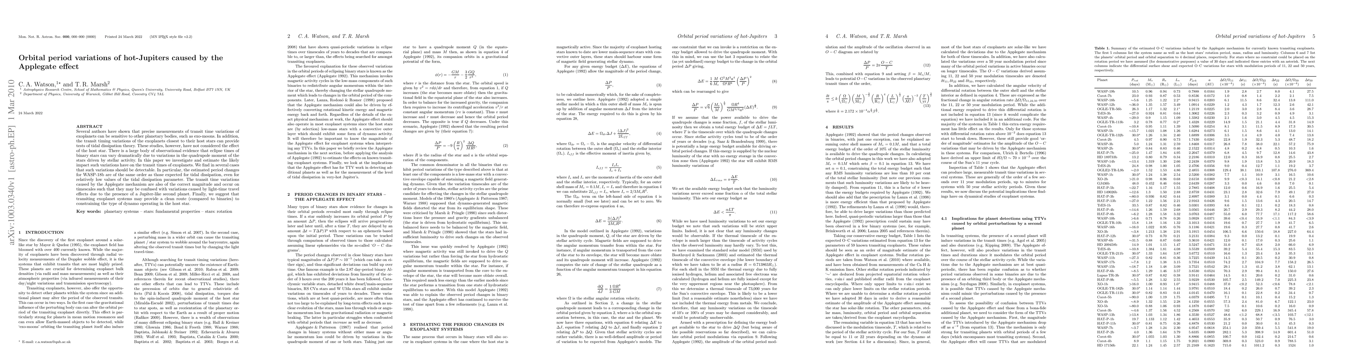 The Applegate effect suggests that the quadrupole moment of a host star can cause variations in exoplanet orbital periods, which may be detectable through transit time measurements. This study estimates the likelihood of such effects on hot-Jupiter exoplanets.