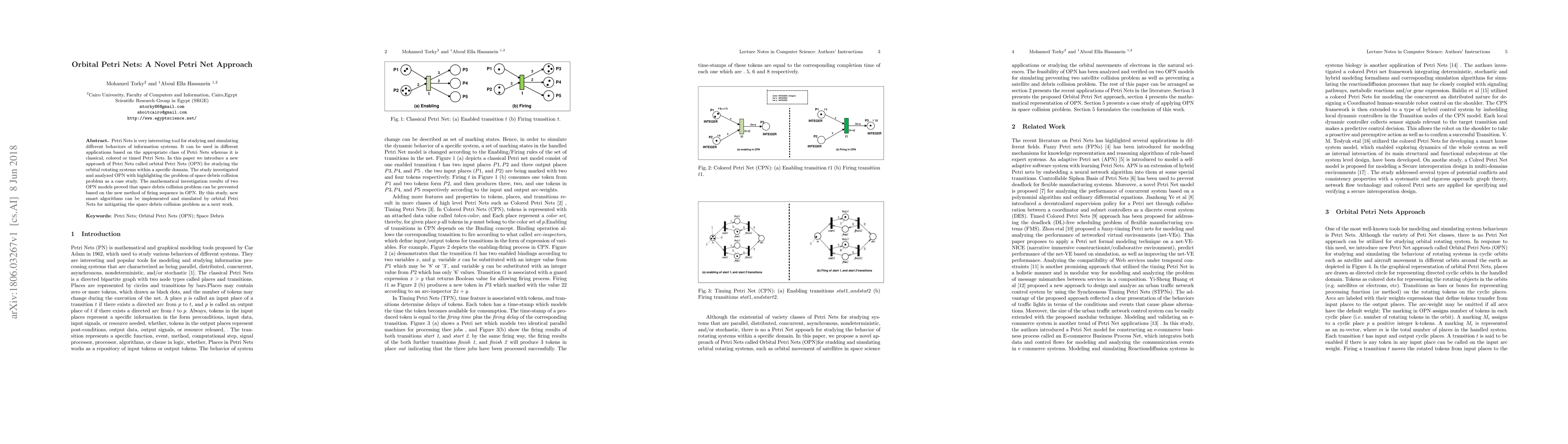 This paper introduces orbital Petri Nets (OPN) as a novel approach for modeling orbital rotating systems, specifically addressing the space debris collision problem. The study demonstrates that OPN can prevent such collisions through innovative firing sequence methods, paving the way for new smart algorithms to mitigate space debris collisions.