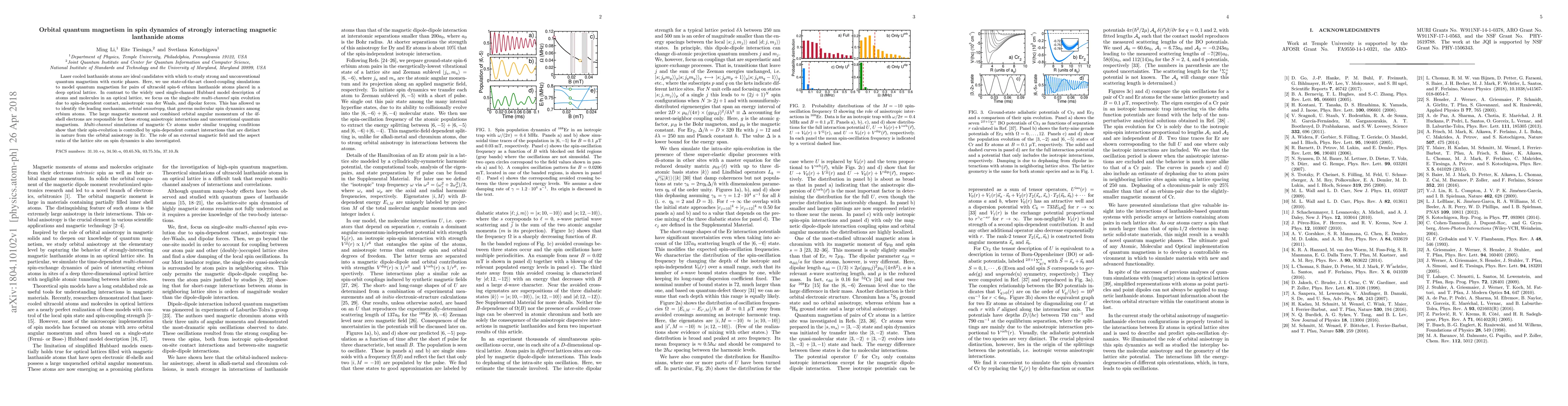 This paper investigates quantum magnetism in pairs of ultracold erbium lanthanide atoms using closed-coupling simulations, identifying orbital anisotropy as the leading mechanism governing their spin dynamics due to strong anisotropic interactions. It contrasts this with spin-dependent contact interactions in magnetic Cr atoms, and explores the influence of external magnetic fields and lattice site geometry.
