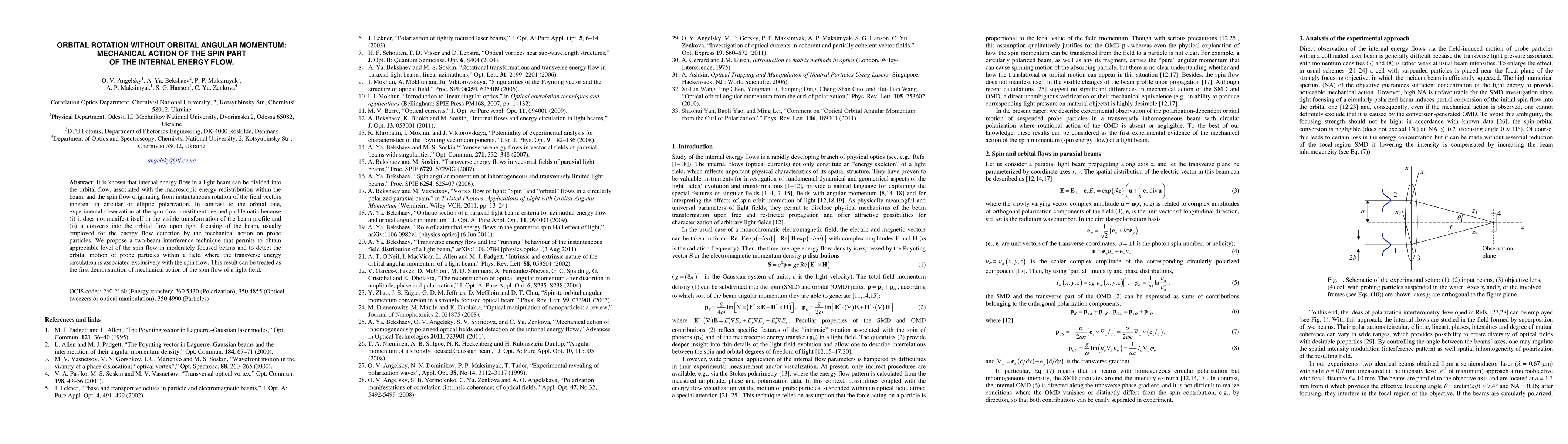 This paper proposes a two-beam interference technique to detect the spin part of a light beam's internal energy flow, which does not convert into orbital flow upon focusing. It demonstrates the mechanical action of the spin flow on probe particles, marking the first observation of such an effect.