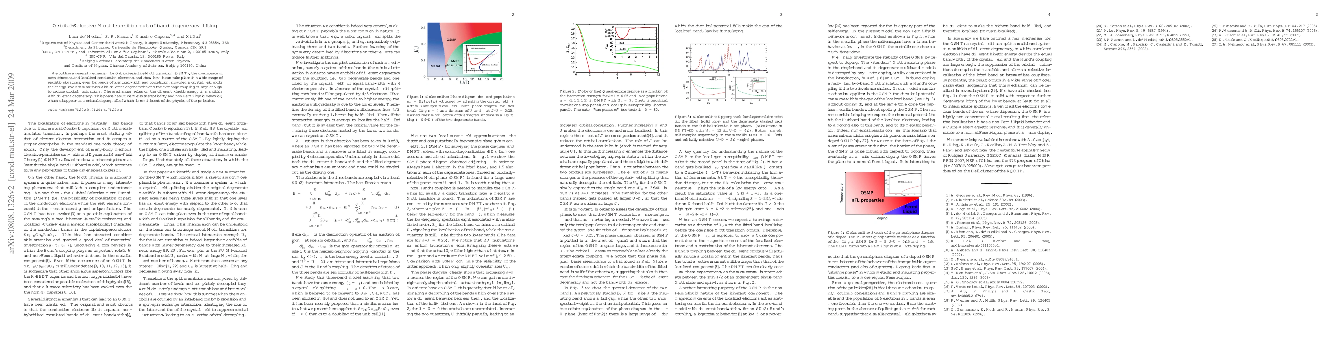 This paper proposes a mechanism for Orbital-selective Mott transition (OSMT) where itinerant and localized electrons coexist, driven by crystal field splitting and large exchange coupling. It highlights the distinct kinetic energy in manifolds with different degeneracies, leading to Curie-Weiss susceptibility and non-Fermi liquid behavior, akin to pnictide physics.