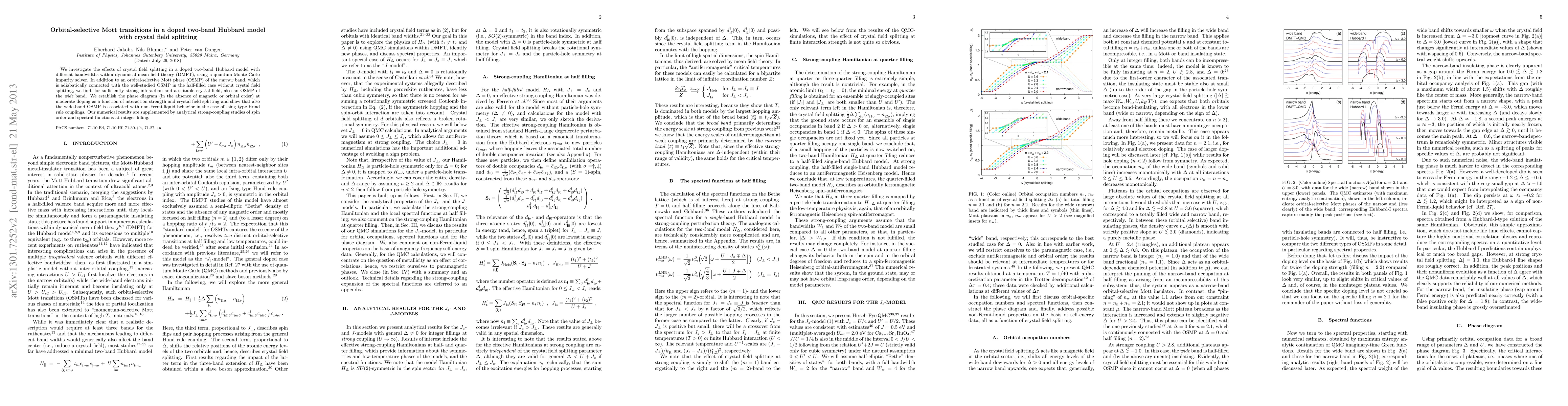 This paper explores the impact of crystal field splitting on a doped two-band Hubbard model using DMFT and quantum Monte Carlo, revealing orbital-selective Mott transitions in both the narrow and wide bands under certain conditions. The study establishes a phase diagram showing non-Fermi-liquid behavior associated with these transitions.