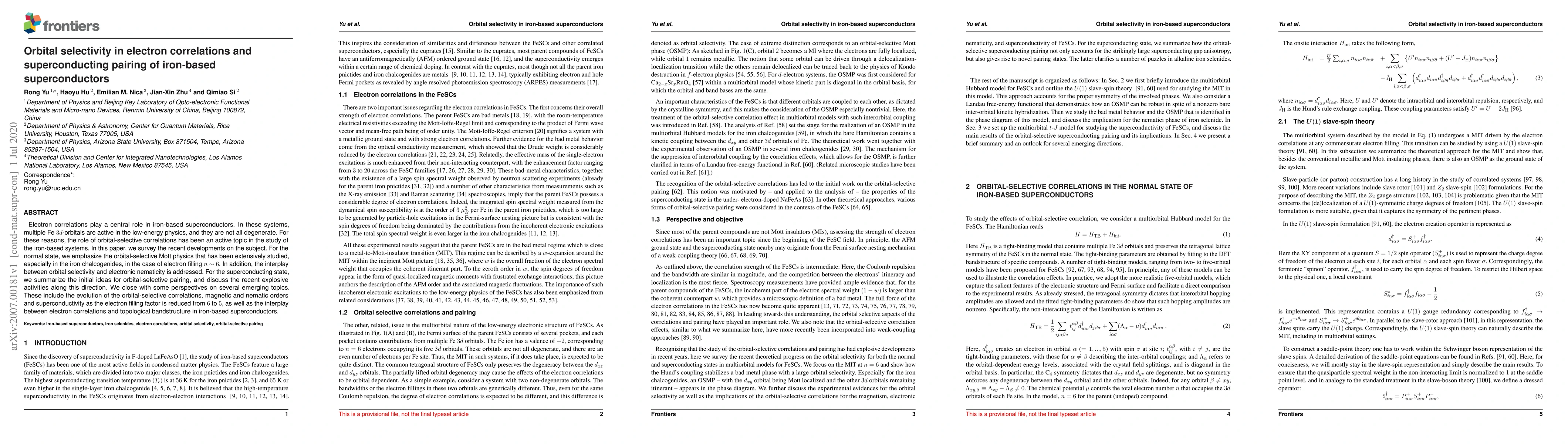 This paper surveys recent developments on orbital-selective electron correlations in iron-based superconductors, emphasizing orbital-selective Mott physics in iron chalcogenides and the interplay with electronic nematicity. It also discusses emerging topics including orbital-selective pairing mechanisms and the influence of electron filling variations and topological bandstructure.