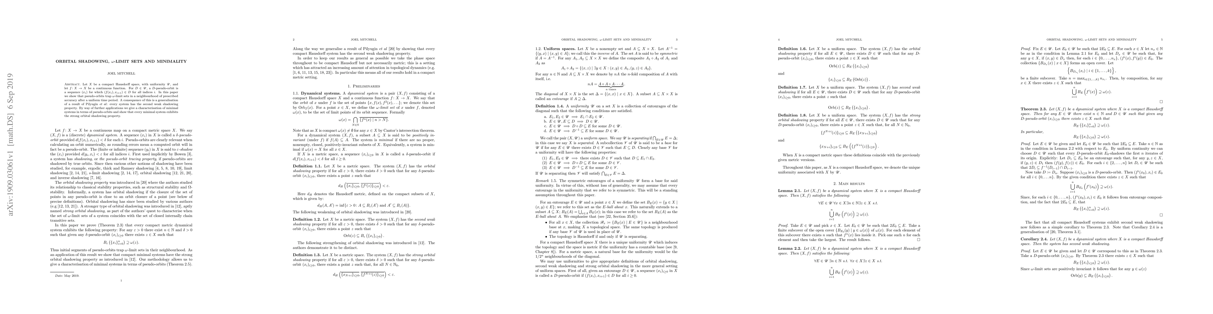 Let $X$ be a compact Hausdorff space, with uniformity $\mathscr{U}$, and let $f \colon X \to X$ be a continuous function. For $D \in \mathscr{U}$, a $D$-pseudo-orbit is a sequence $(x_i)$ for which $(f(x_i),x_{i+1}) \in D$ for all indices $i$. In this paper we show that pseudo-orbits trap $\omega$-limit sets in a neighbourhood of prescribed accuracy after a uniform time period. A consequence of this is a generalisation of a result of Pilyugin et al: every system has the second weak shadowing property. By way of further applications we give a characterisation of minimal systems in terms of pseudo-orbits and show that every minimal system exhibits the strong orbital shadowing property.
