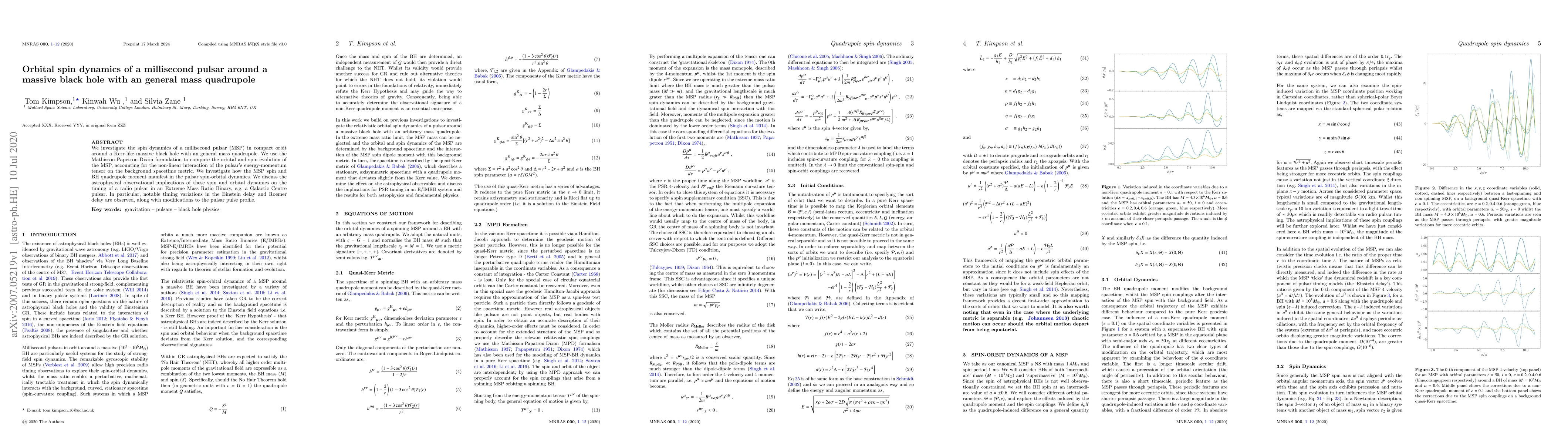 We investigate the spin dynamics of a millisecond pulsar (MSP) in compact orbit around a Kerr-like massive black hole with an general mass quadrupole. We use the Mathisson-Papetrou-Dixon formulation to compute the orbital and spin evolution of the MSP, accounting for the non-linear interaction of the pulsar's energy-momentum tensor on the background spacetime metric. We investigate how the MSP spin and BH quadrupole moment manifest in the pulsar spin-orbital dynamics. We discuss the astrophysical observational implications of these spin and orbital dynamics on the timing of a radio pulsar in an Extreme Mass Ratio Binary, e.g. a Galactic Centre pulsar. In particular, notable timing variations in the Einstein delay and Roemer delay are observed, along with modifications to the pulsar pulse profile.