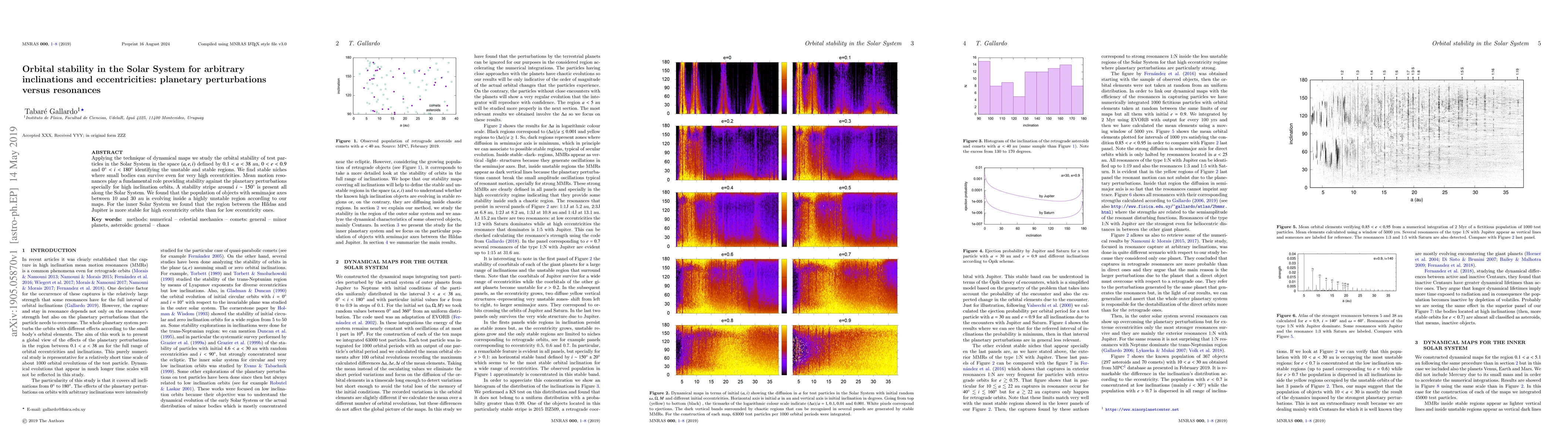 This paper uses dynamical maps to analyze orbital stability in the Solar System across various inclinations and eccentricities, identifying regions of stability and instability. Mean motion resonances significantly enhance stability, particularly for high inclination orbits, with a notable stability stripe around an inclination of 150 degrees.