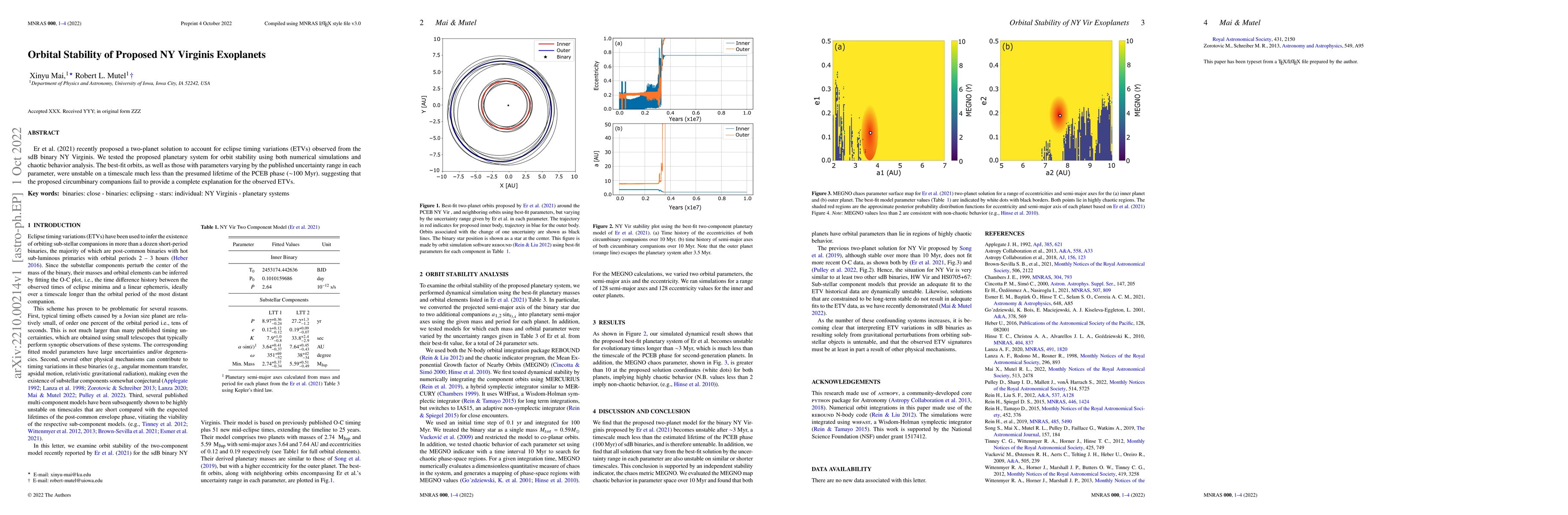 Er et al. (2021) proposed a two-planet model to explain eclipse timing variations in NY Virginis. Stability tests using simulations and chaos analysis revealed that the proposed orbits are unstable on a short timescale, indicating that the model does not adequately account for the observed variations.