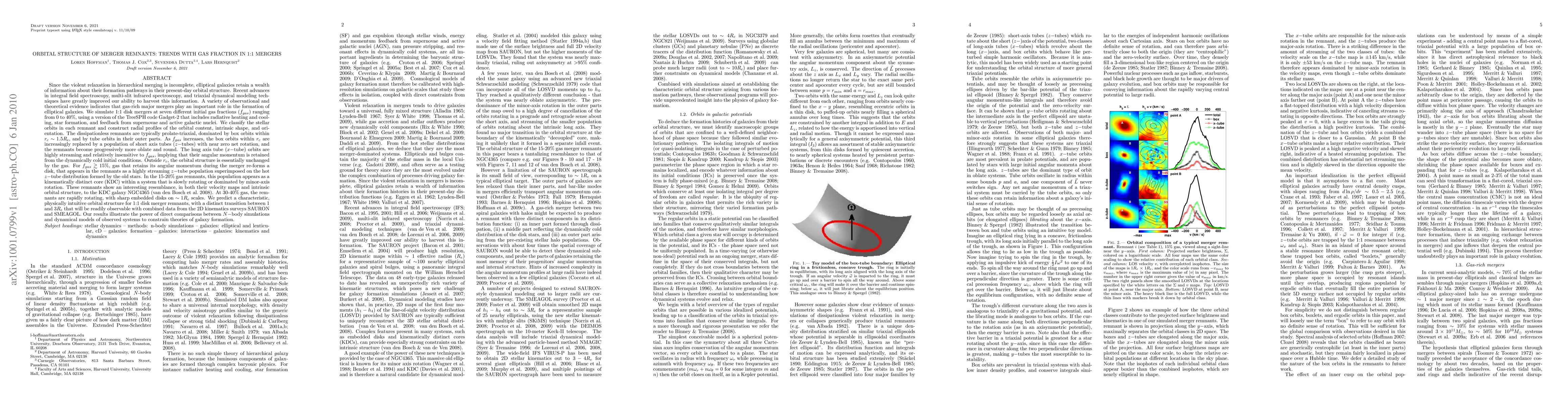 This paper investigates the orbital structure of 1:1 disk merger remnants at varying initial gas fractions, finding that higher gas fractions lead to more oblate and round remnants with a transition from box orbits to z-tubes within the central region. The study predicts a distinct observable transition in orbital structure between 1 and 3Reff, useful for understanding the formation of elliptical galaxies.