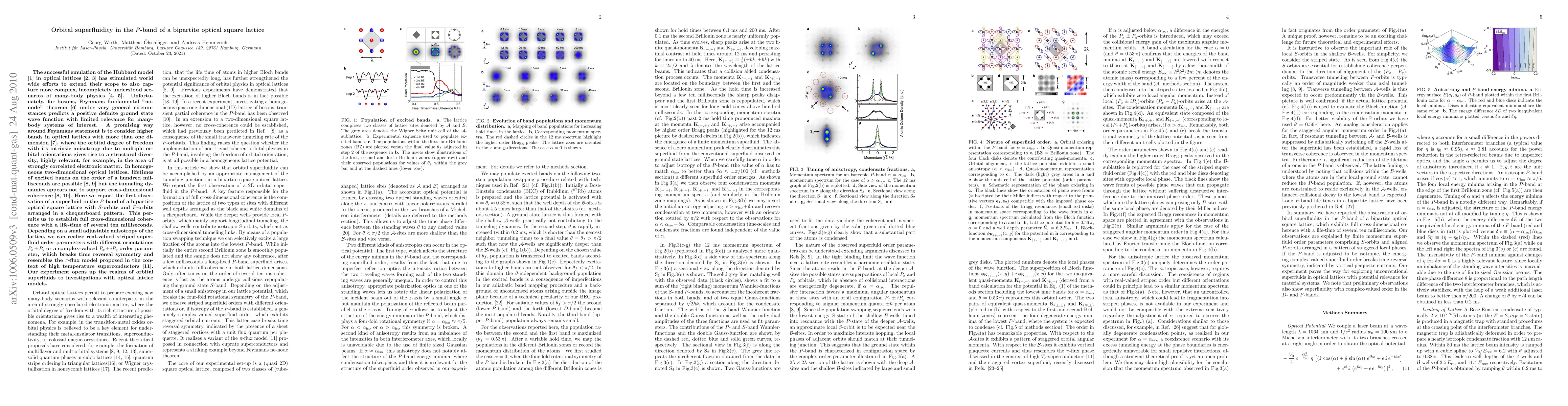 The successful emulation of the Hubbard model in optical lattices has stimulated world wide efforts to extend their scope to also capture more complex, incompletely understood scenarios of many-body physics. Unfortunately, for bosons, Feynmans fundamental "no-node" theorem under very general circumstances predicts a positive definite ground state wave function with limited relevance for many-body systems of interest. A promising way around Feynmans statement is to consider higher bands in optical lattices with more than one dimension, where the orbital degree of freedom with its intrinsic anisotropy due to multiple orbital orientations gives rise to a structural diversity, highly relevant, for example, in the area of strongly correlated electronic matter. In homogeneous two-dimensional optical lattices, lifetimes of excited bands on the order of a hundred milliseconds are possible but the tunneling dynamics appears not to support cross-dimensional coherence. Here we report the first observation of a superfluid in the $P$-band of a bipartite optical square lattice with $S$-orbits and $P$-orbits arranged in a chequerboard pattern. This permits us to establish full cross-dimensional coherence with a life-time of several ten milliseconds. Depending on a small adjustable anisotropy of the lattice, we can realize real-valued striped superfluid order parameters with different orientations $P_x \pm P_y$ or a complex-valued $P_x \pm i P_y$ order parameter, which breaks time reversal symmetry and resembles the $\pi$-flux model proposed in the context of high temperature superconductors. Our experiment opens up the realms of orbital superfluids to investigations with optical lattice models.