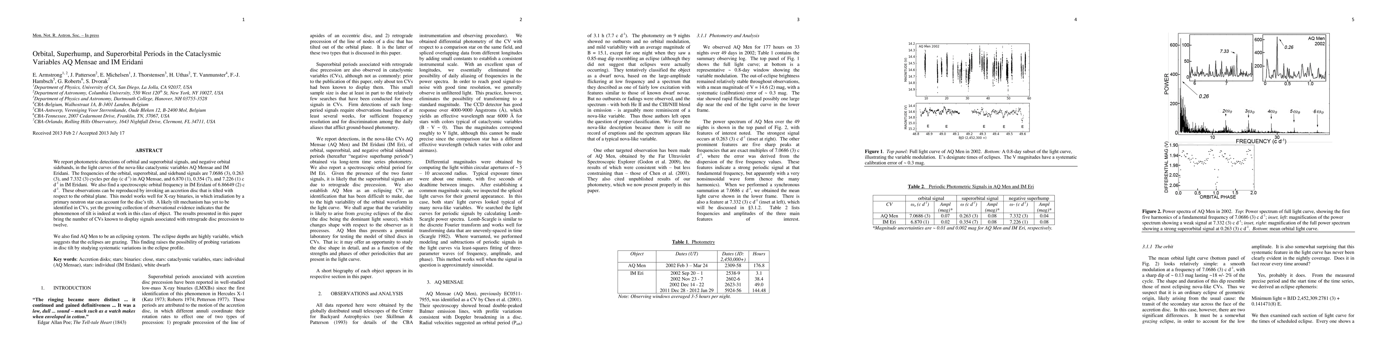 Researchers detected orbital and superorbital periods in cataclysmic variables AQ Mensae and IM Eridani, suggesting an accretion disc tilt mechanism that may explain similar phenomena in X-ray binaries.