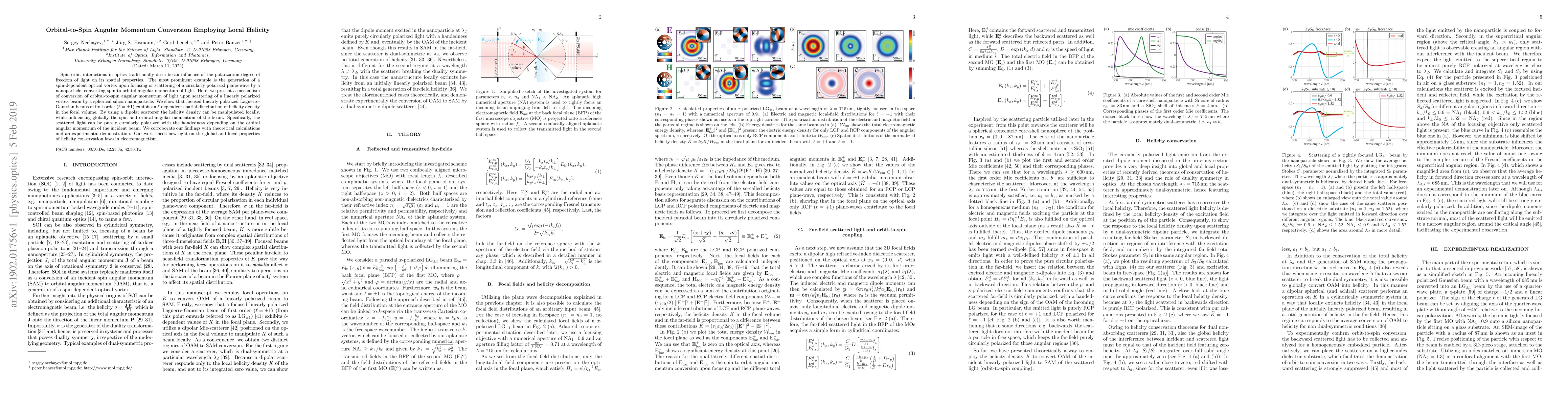 This paper presents a novel mechanism for converting orbital angular momentum to spin angular momentum in light through the scattering of linearly polarized vortex beams by silicon nanoparticles. The study demonstrates that local manipulation of helicity density can globally influence the spin and orbital angular momentum of the scattered light, corroborated by both theoretical calculations and experimental results.